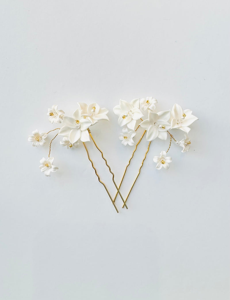 flowers wedding hair pins, set of 3 hair pins with clay flowers - style 22003