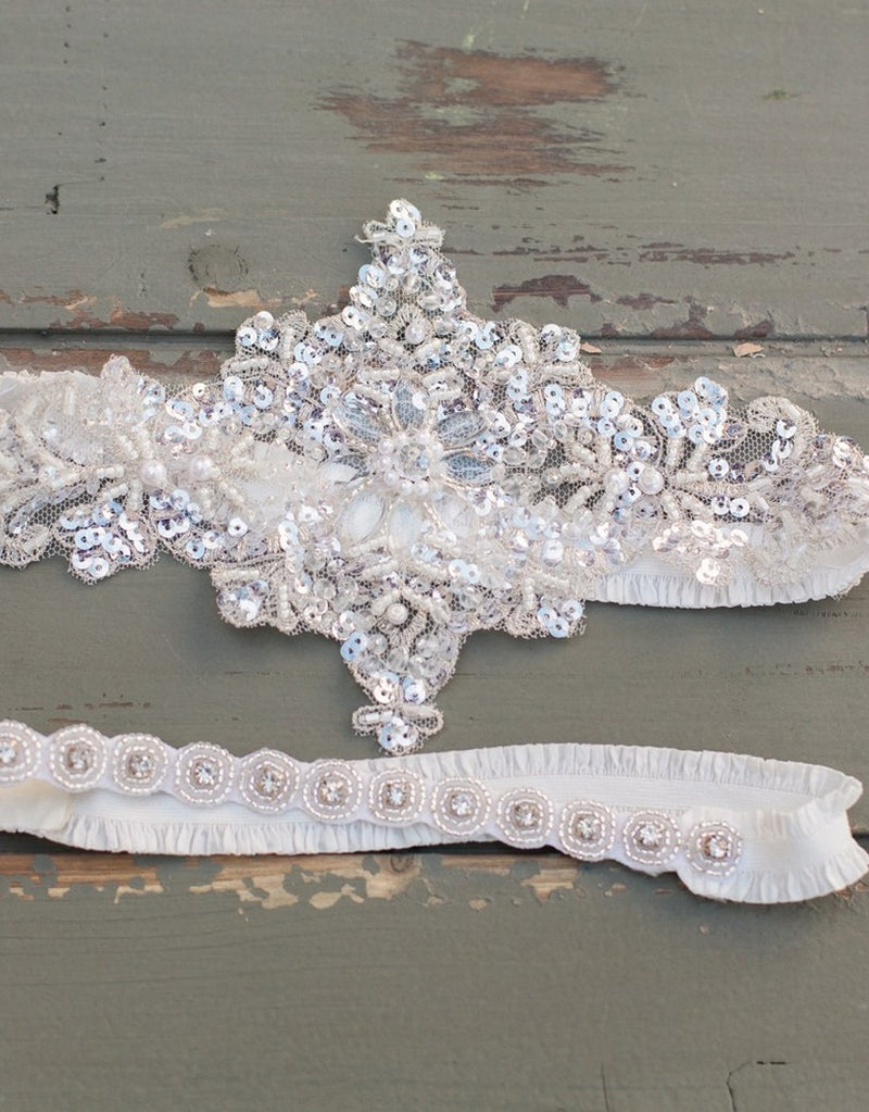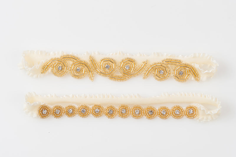 Unique beaded garter set, bridal garter set - BOHEME style 21027