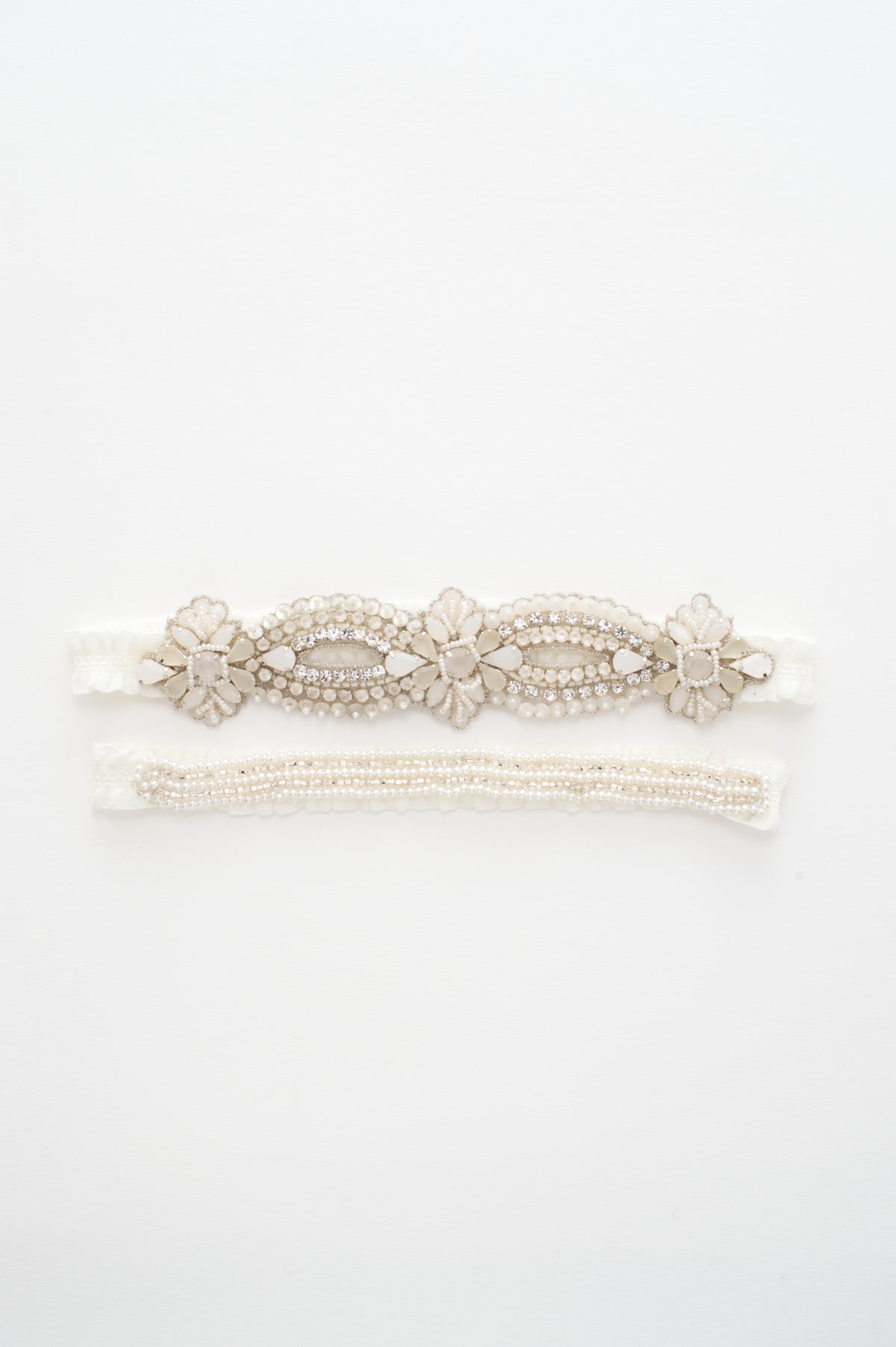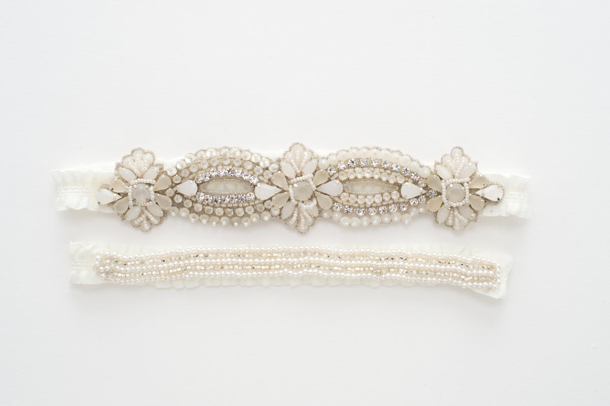 white opal rhinestone garter set - style 20060