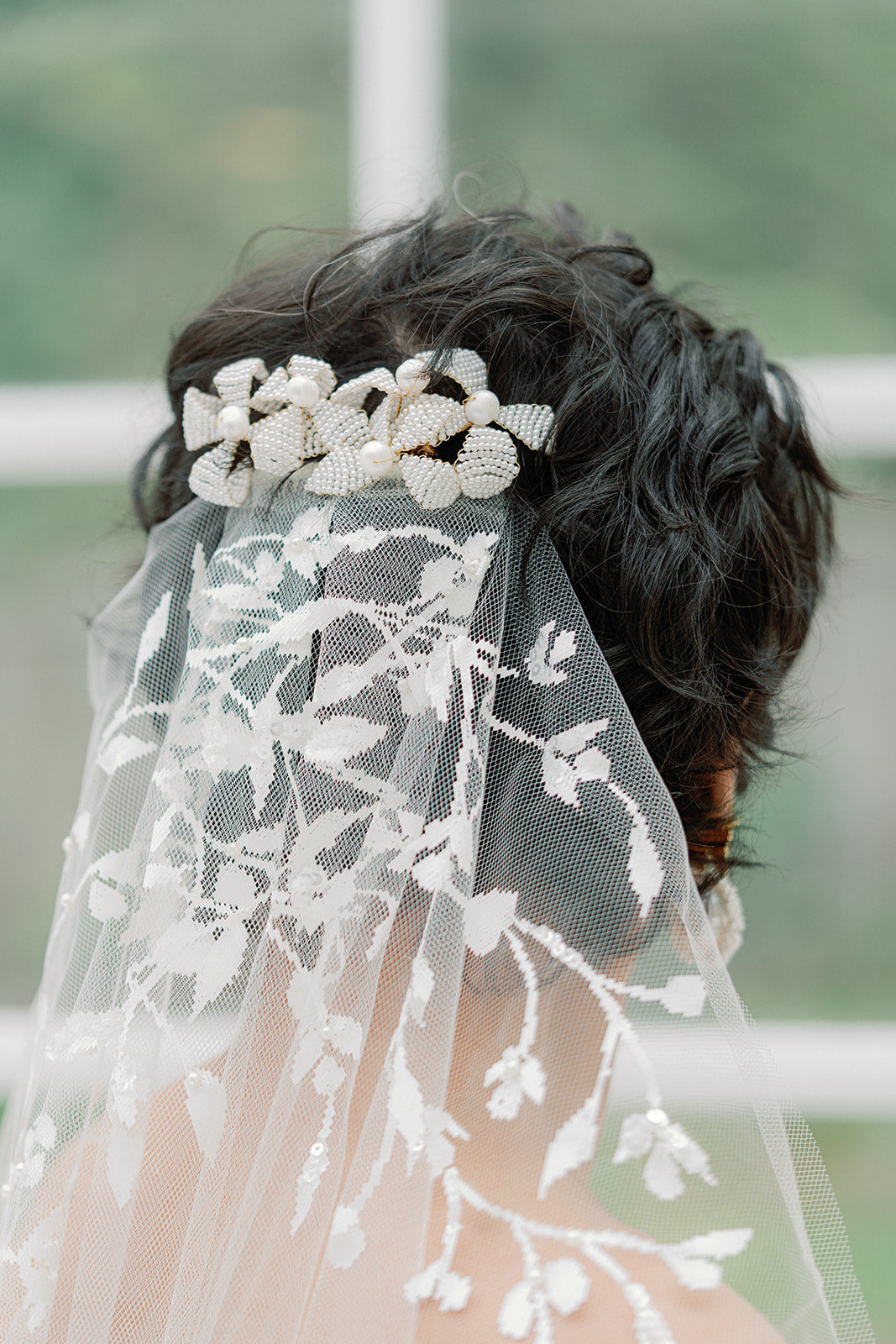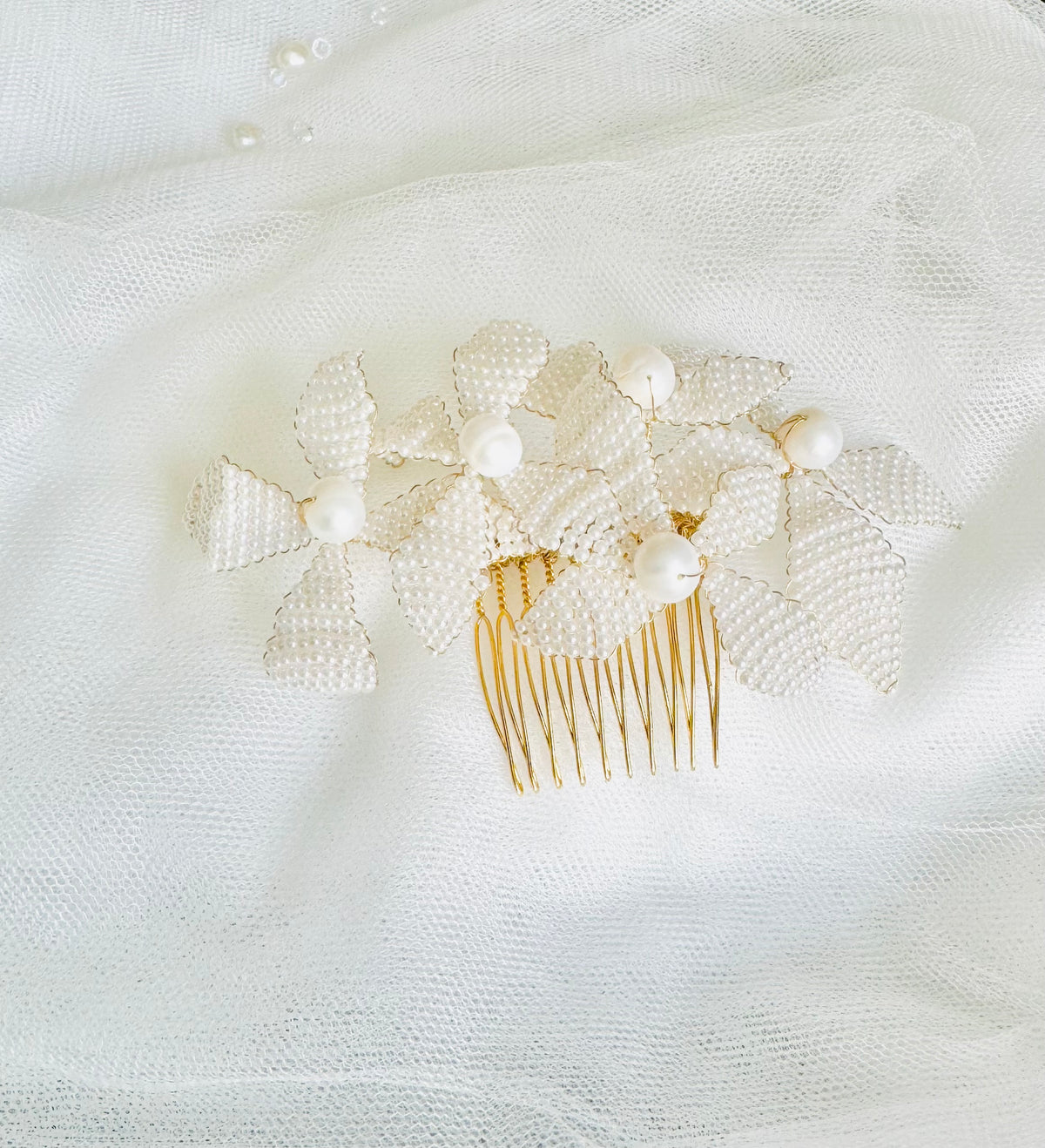 beaded floral hair comb, easy and flexibility in styling, handwired 3 d pearls flowers adorns with freshwater pearls and a plated wire comb, silver or gold wire.