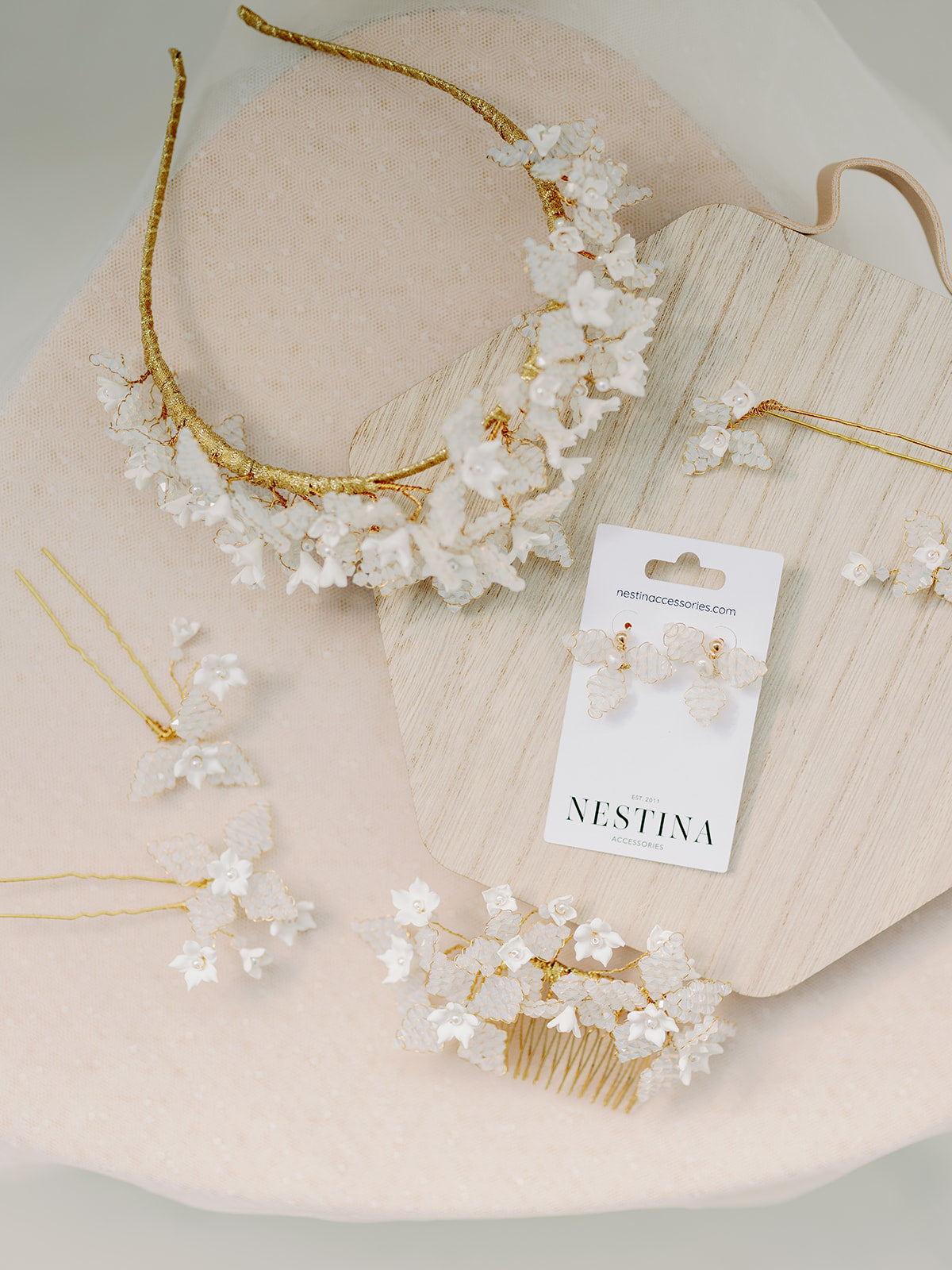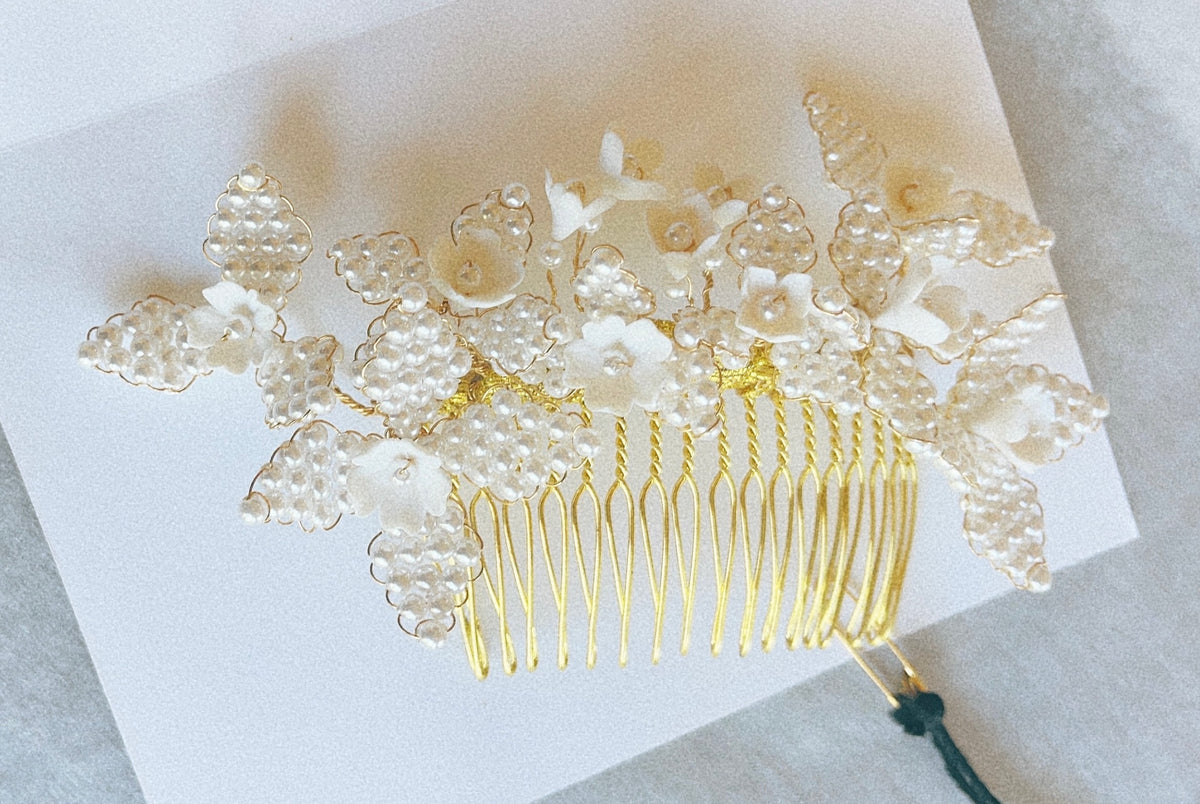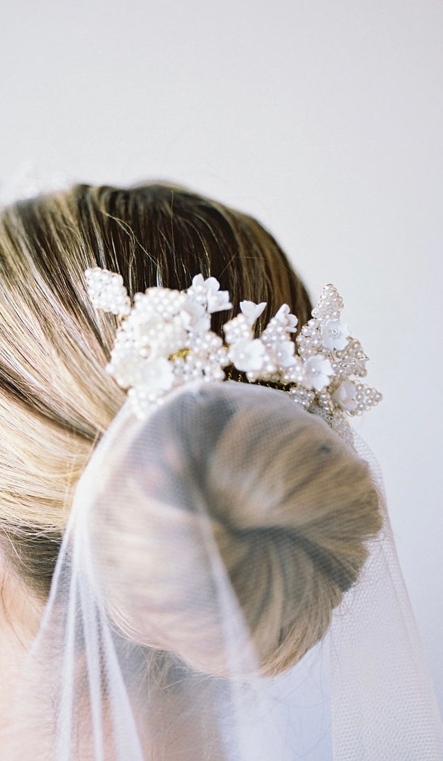 patiently hand made one beads at the time this floral headpiece embodies the romance and timelessness of a modern bridal party.