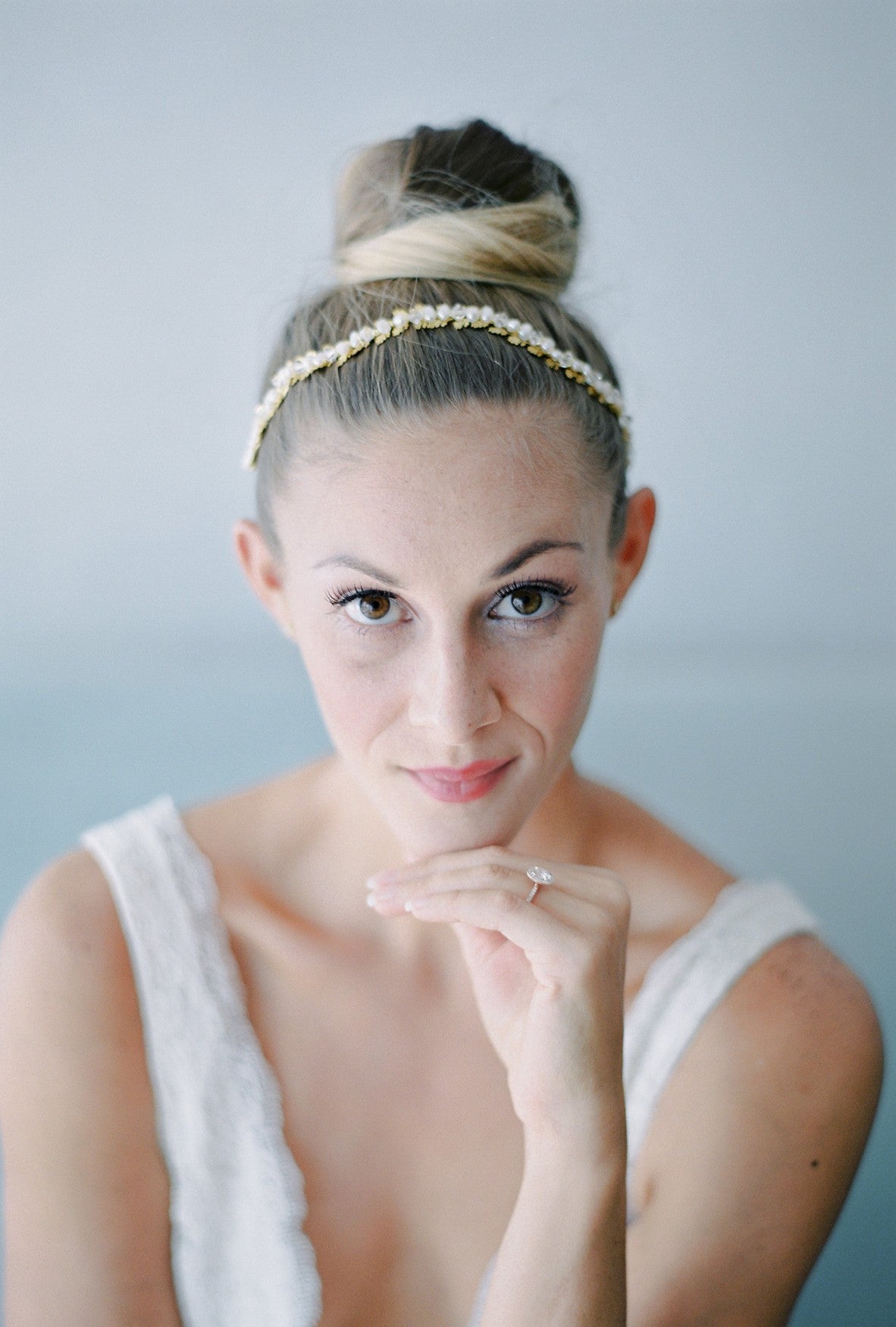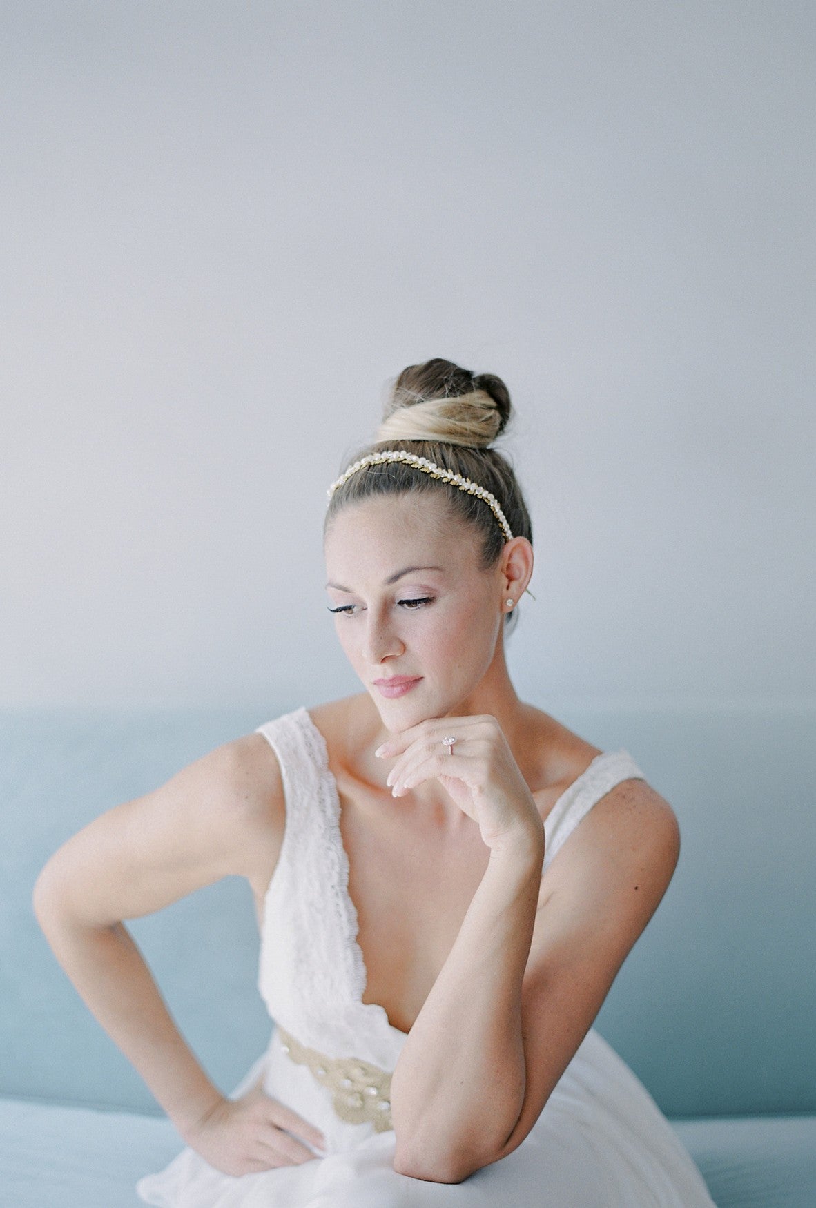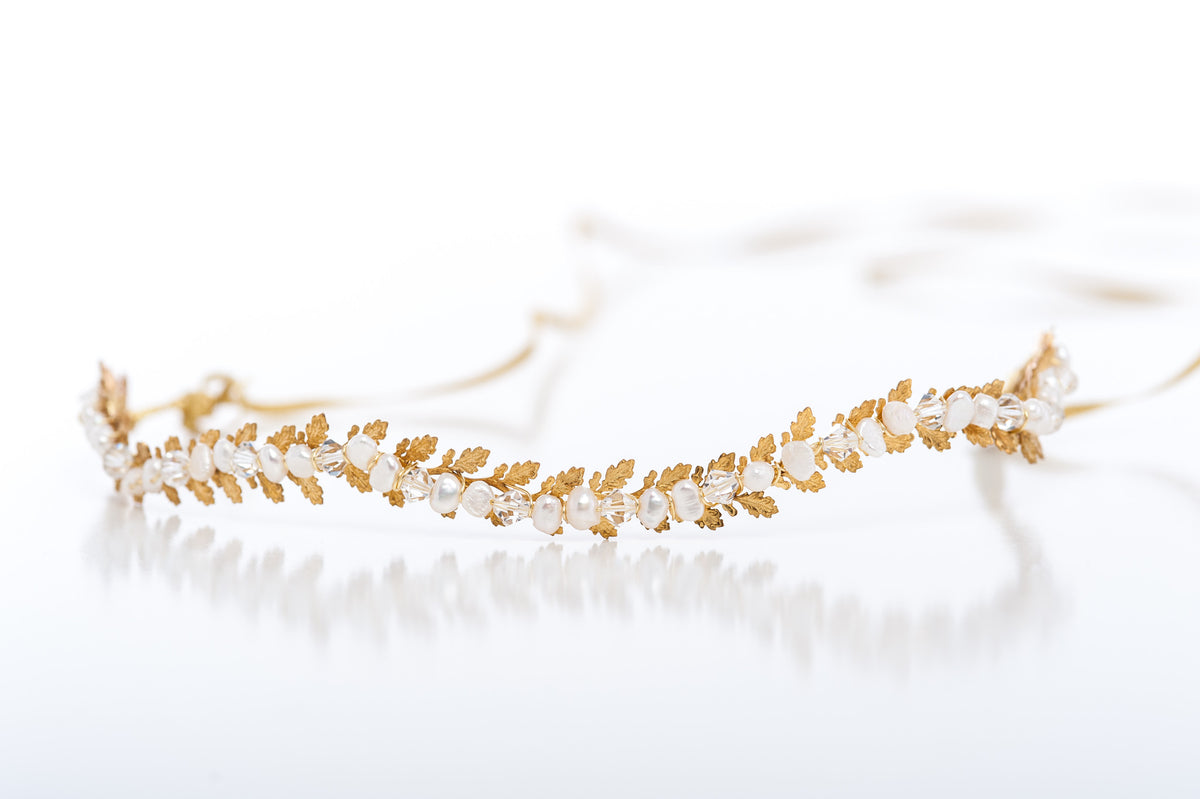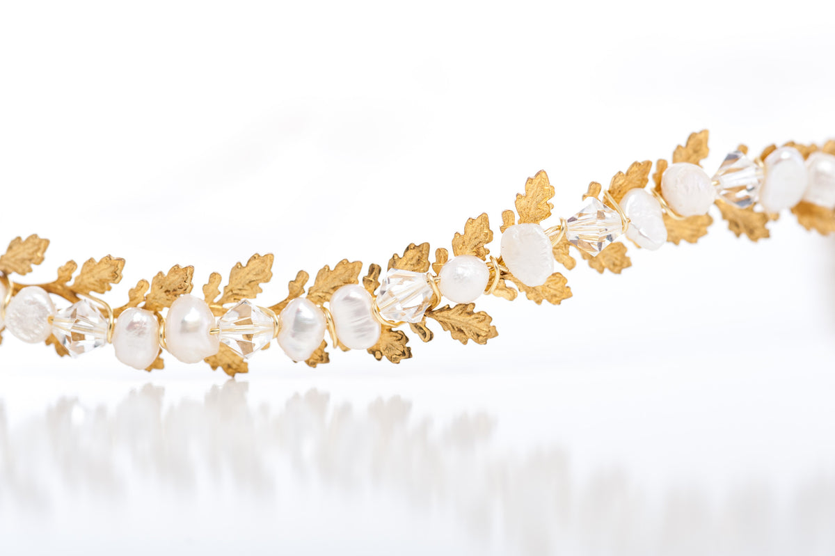 Brass leaves headpieces with wired crystal beads and freshwater pearls