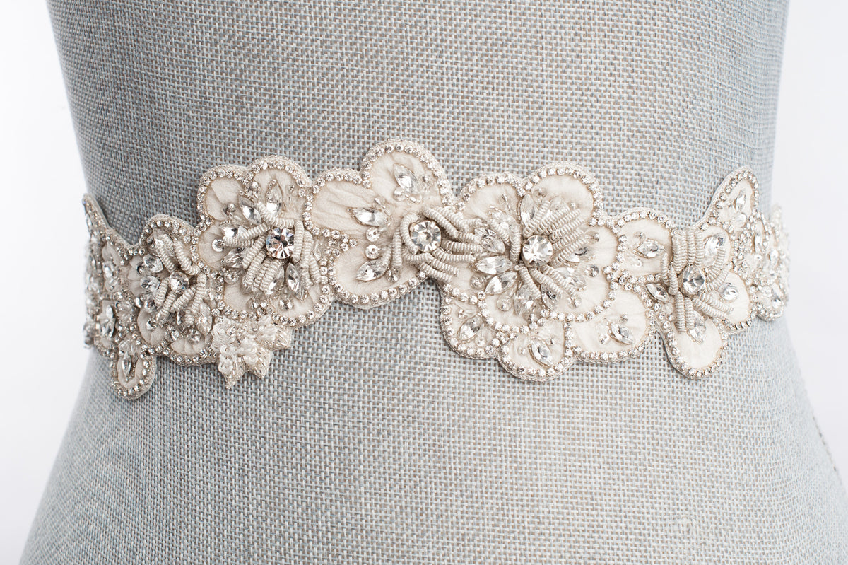 luxury bridal sash, intricate exquisite embroidered bridal sash.