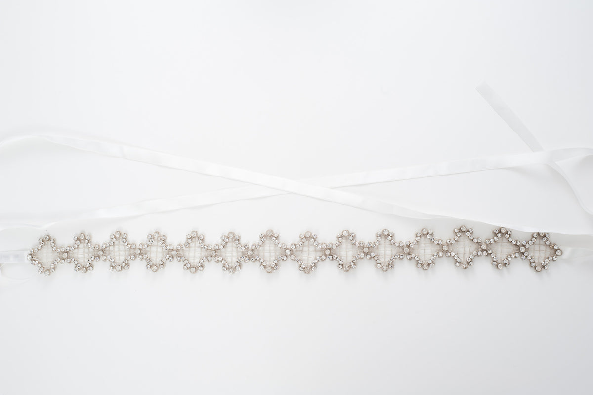 geometric (diamond) design with silver thread net in the middle and Rhinestones around