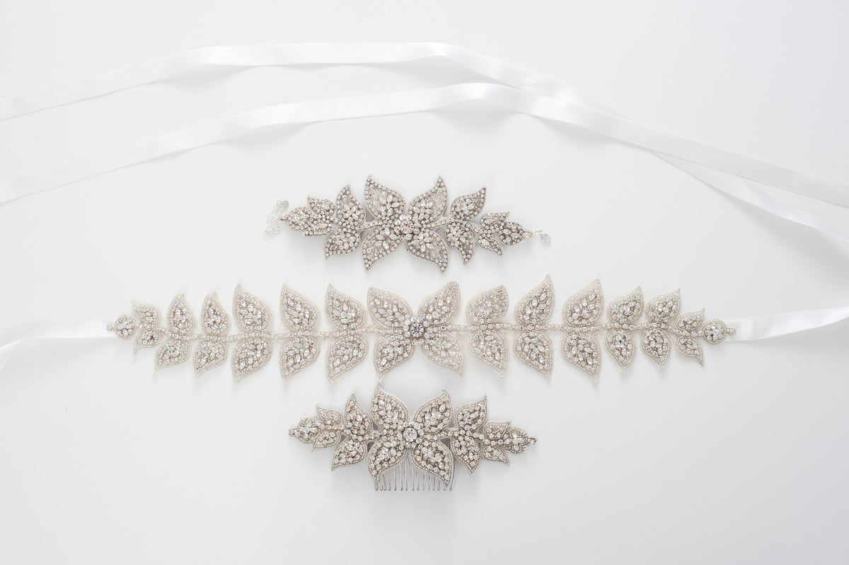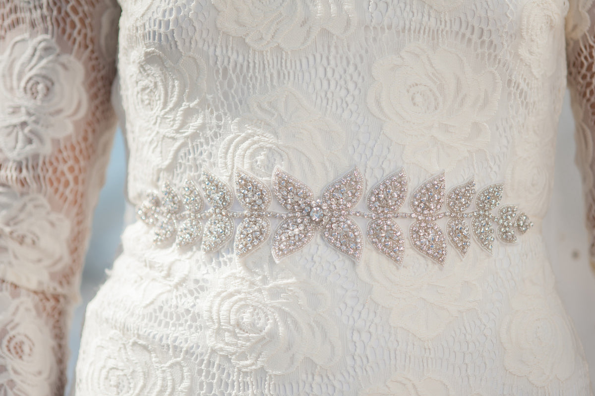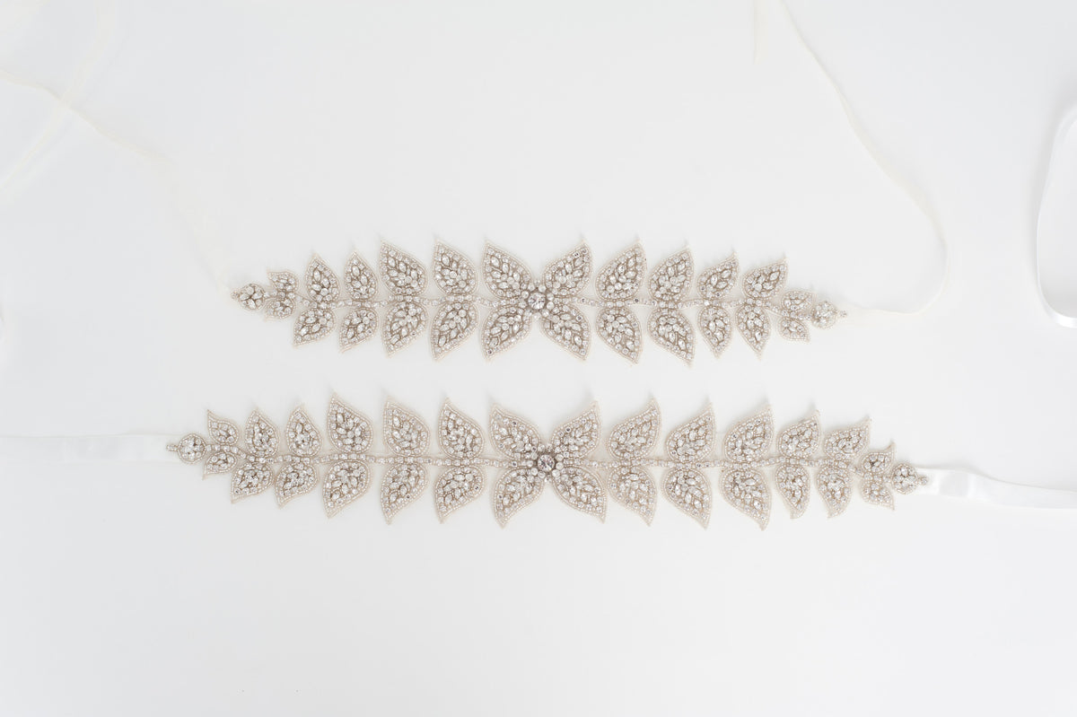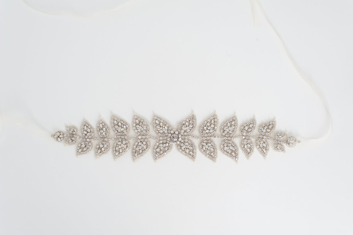 Ultimate beaded leaves vine wedding sash SB170692 FOLIAGE