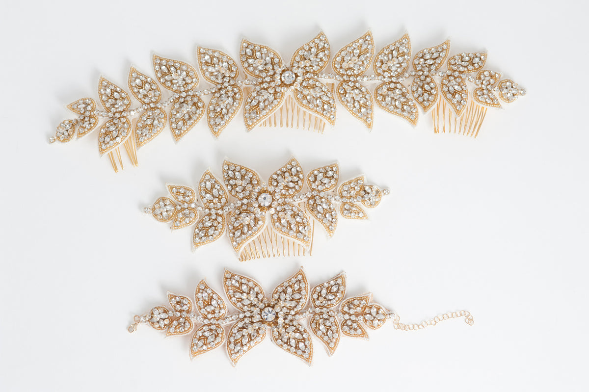 FOLIAGE design is made with rhinestones faux pearls and glass beads