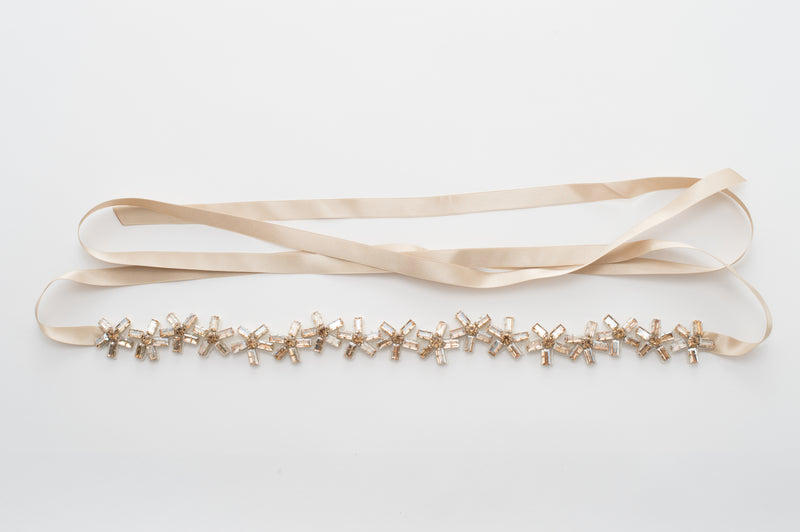 thin crystal bridal belt, narrow wedding belt, ROMANCE style 21019