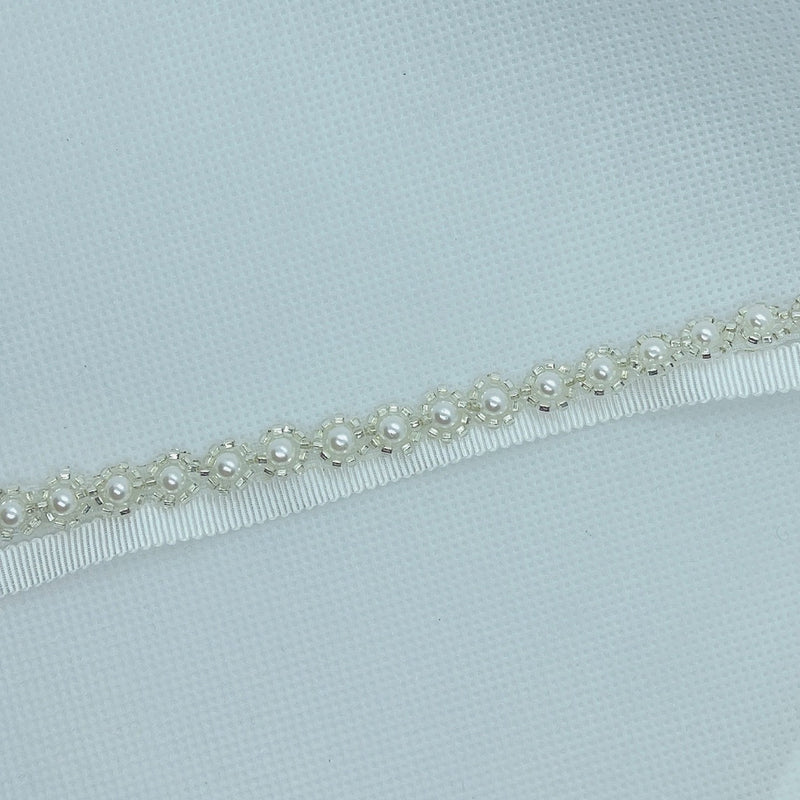 narrow pearls and silver glass bead sash or belt, small JOCEY - style 21020