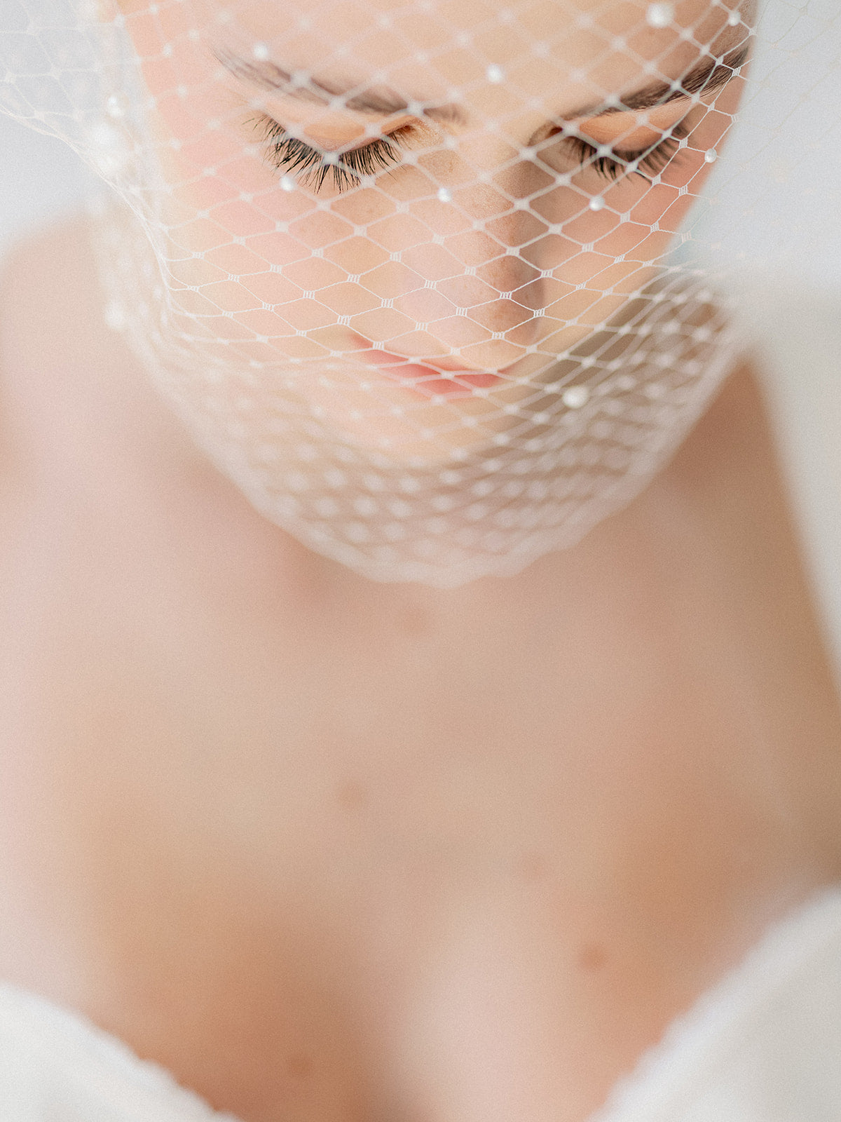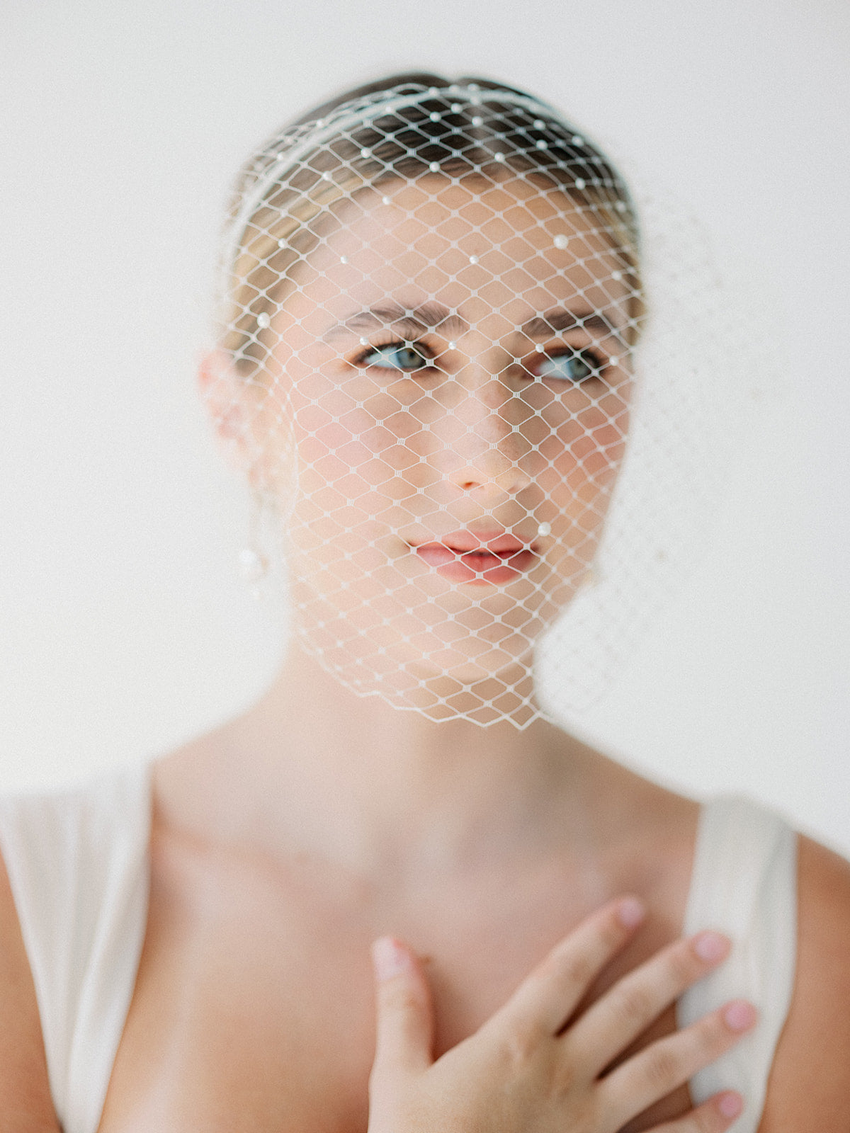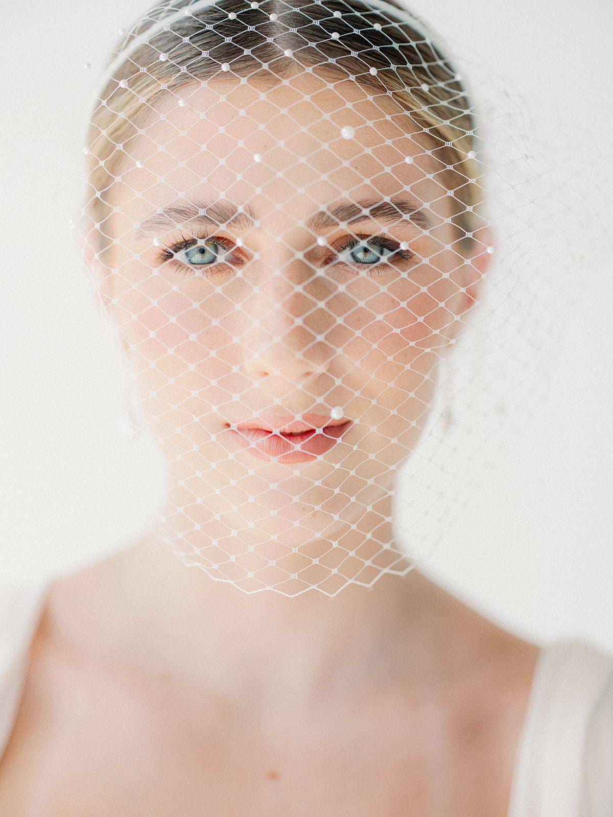 The birdgcage veil headband is made of nylon veiling with scatered pearls cabochons  in various sizes
