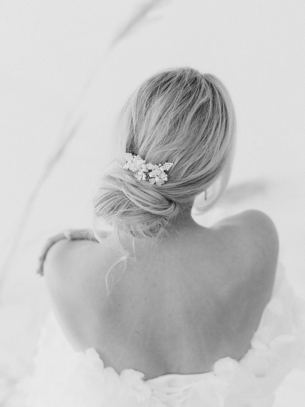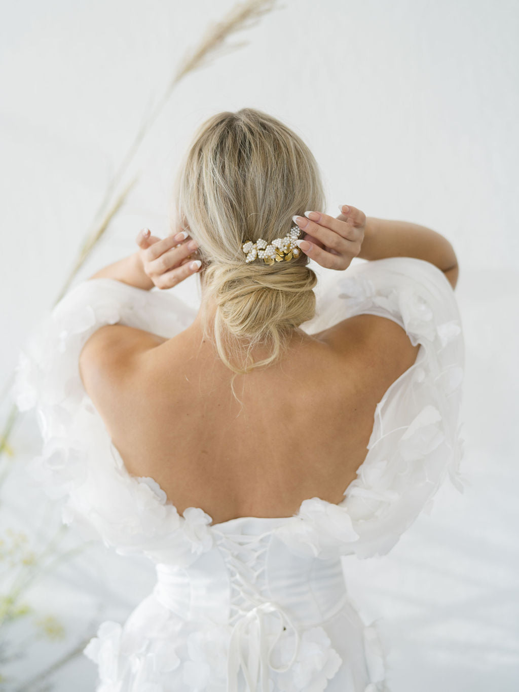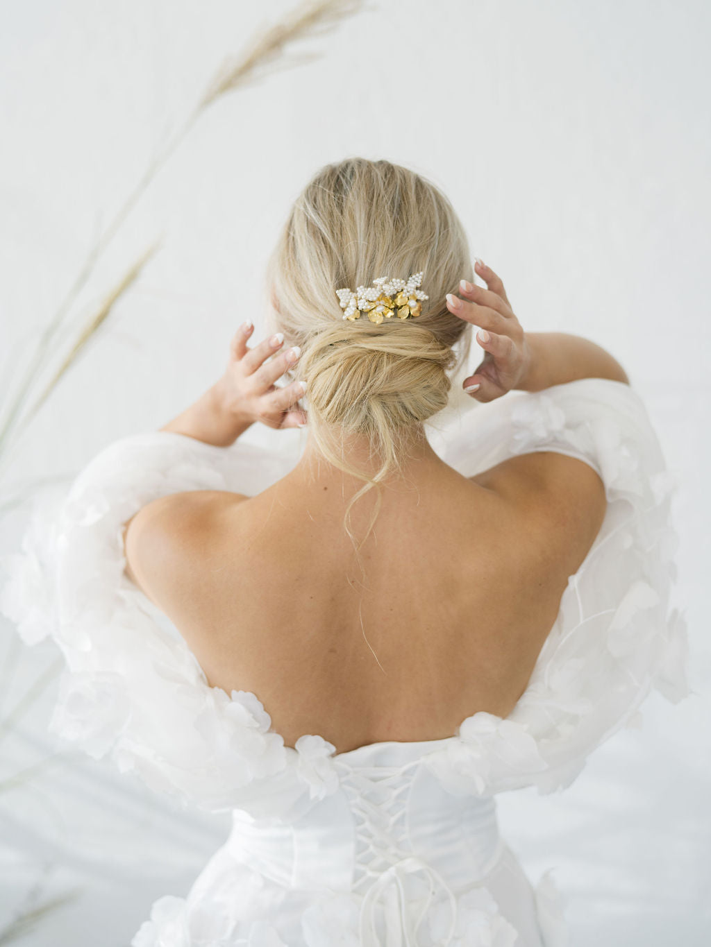beautiful hair adornment, delicatly made with a metal wire hair comb , plated brass flowers and handbeaded pearls butterflies