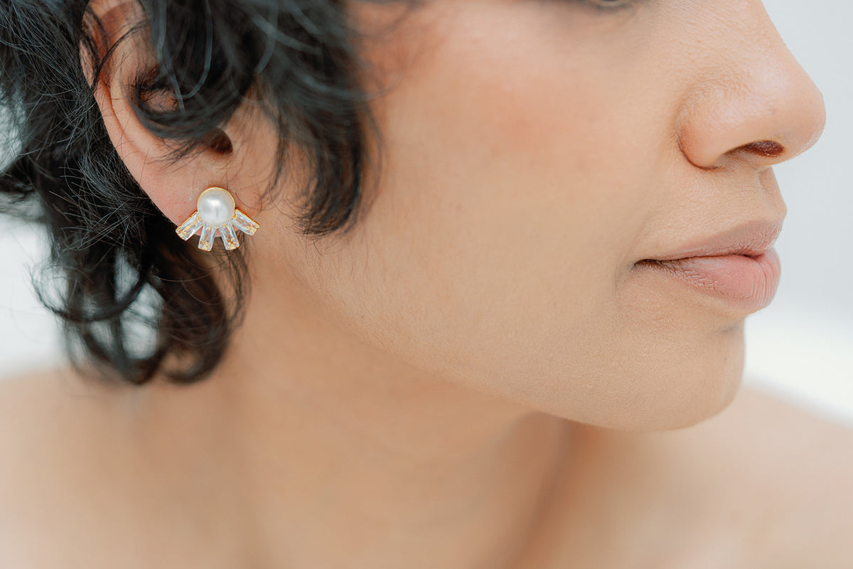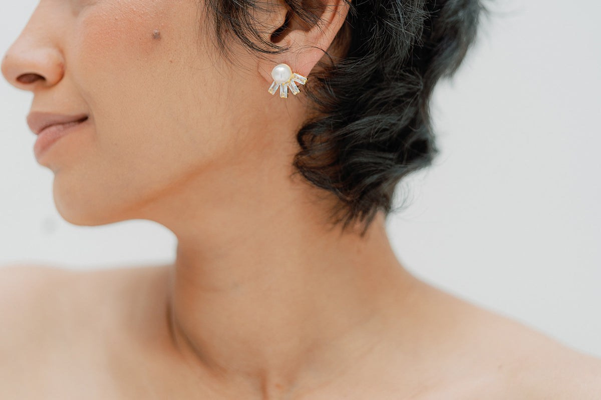 rhinestones baguettes and pearl stud earrings - ALBANNE- 25026