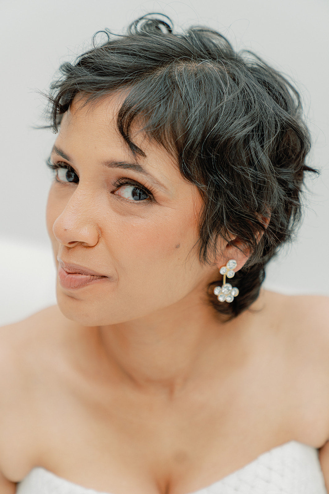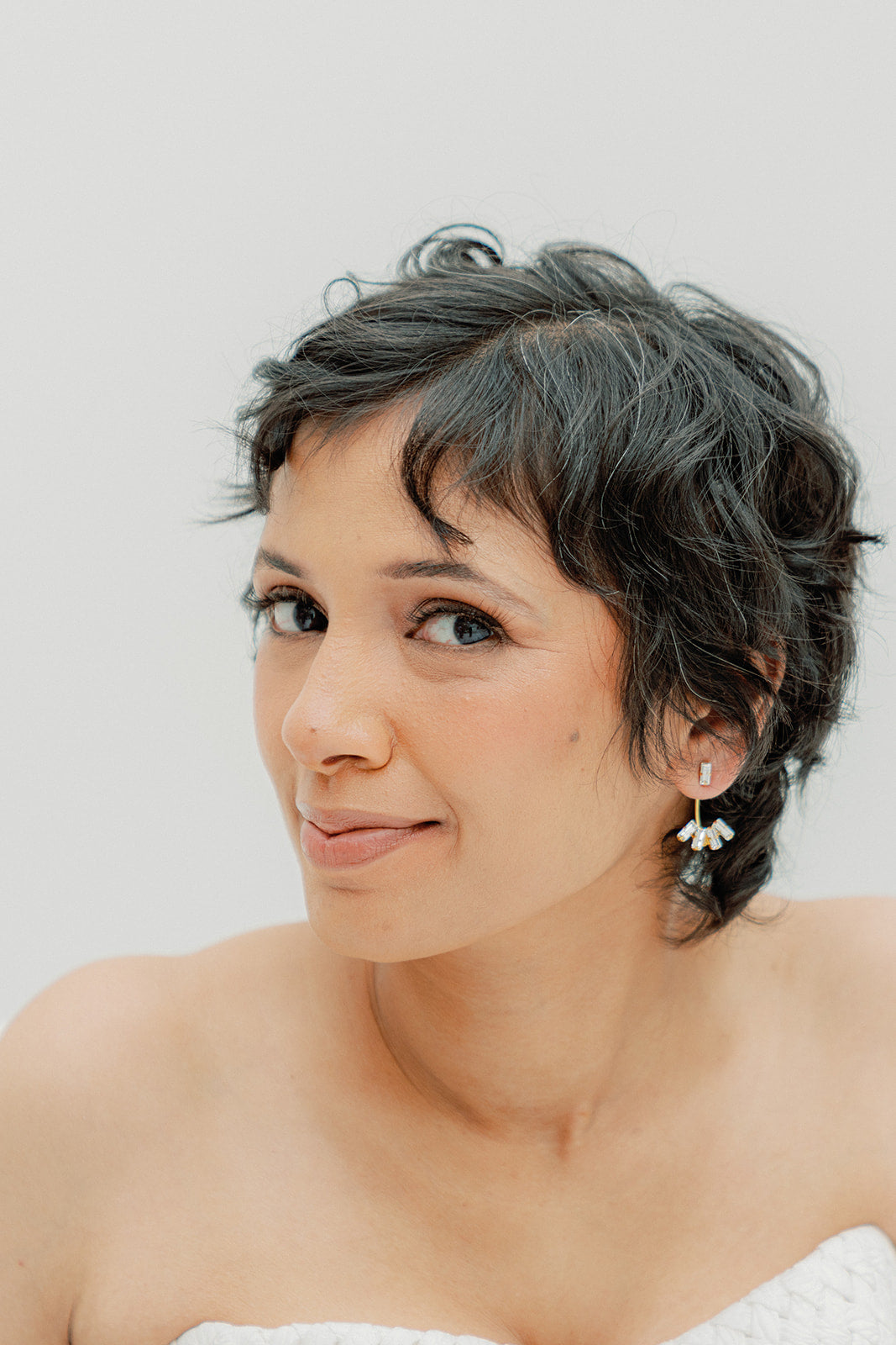 handmade with rhinestones baquette, these earrings have 2 parts, a single baguette stud with a 4 baguettes jacket closure. They can be worn with or without the jacket.