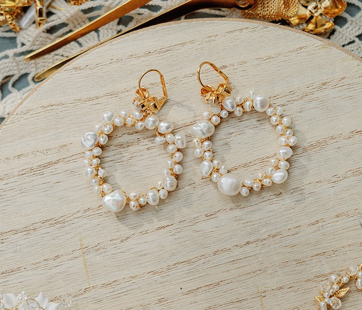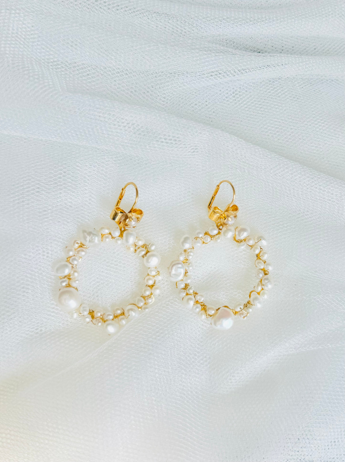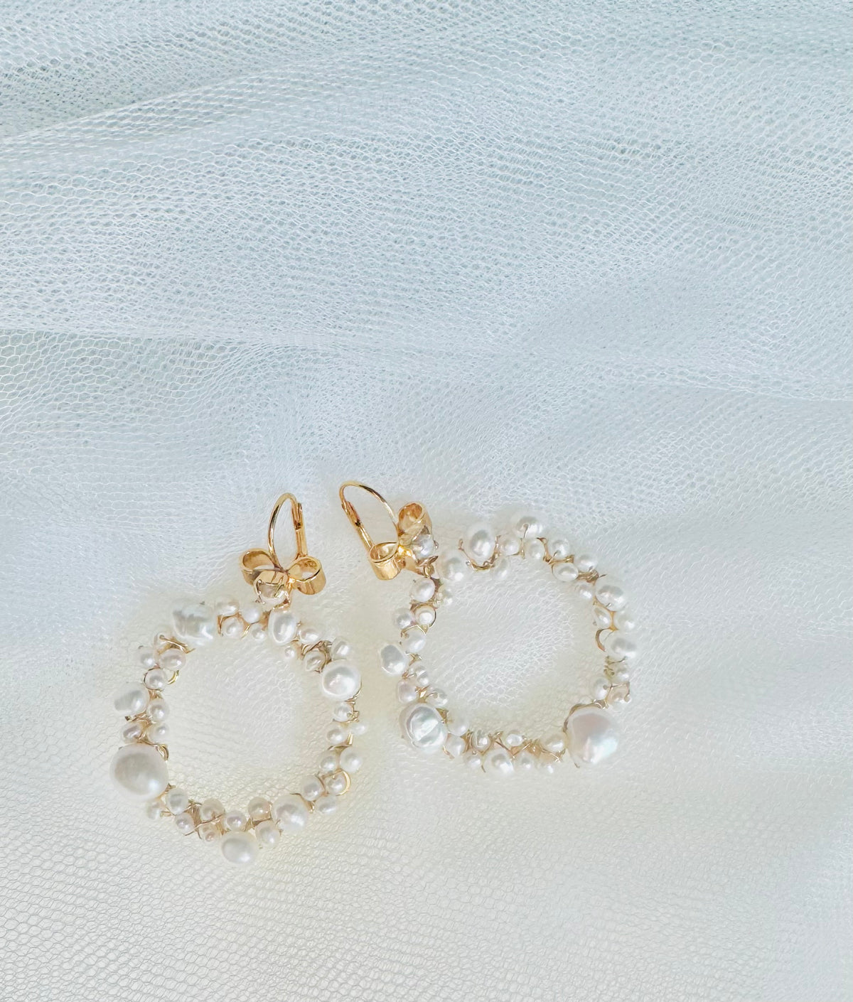 handmade in our studio, these earrings features an imported bow earring component,  plated brass and freshwater pearls