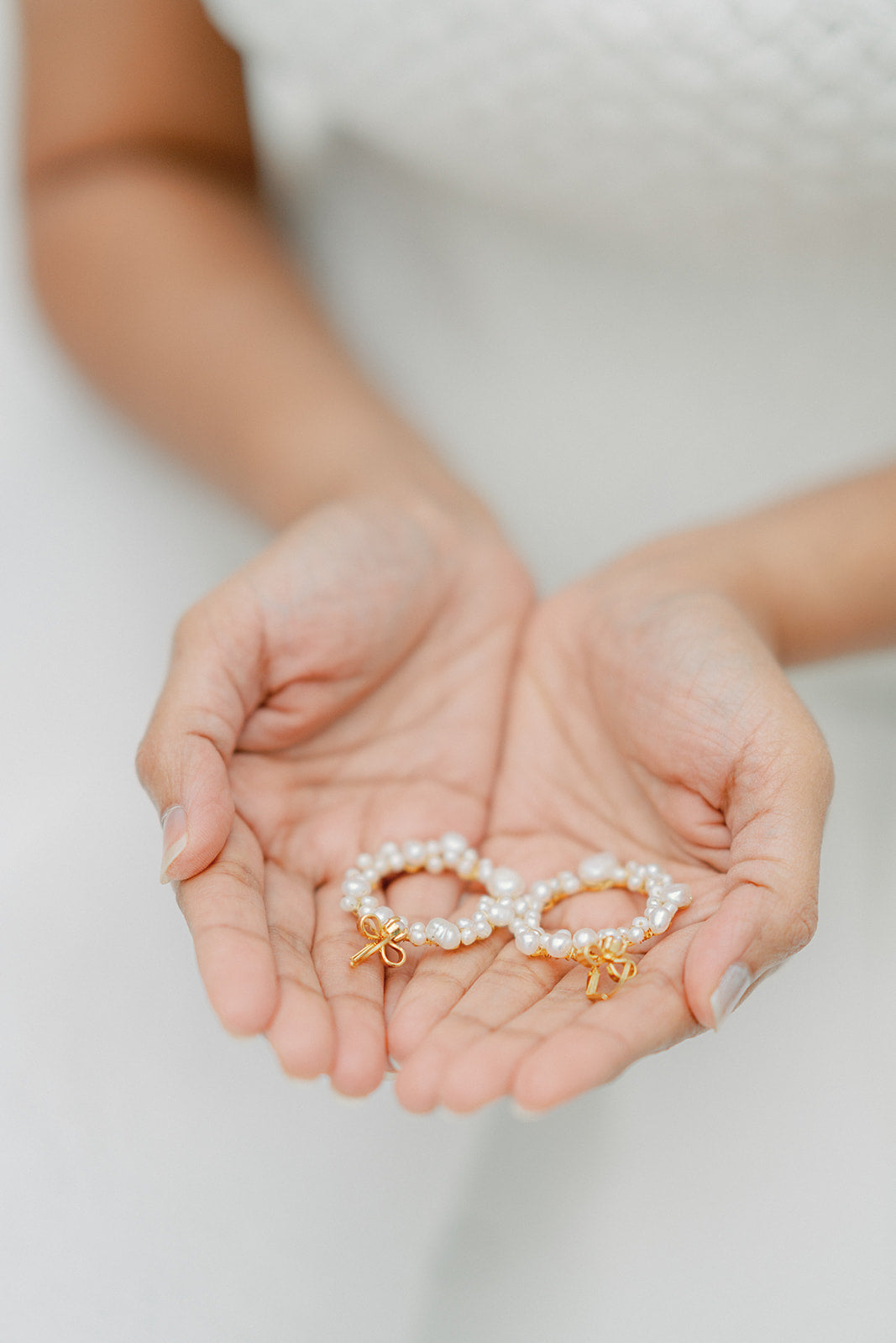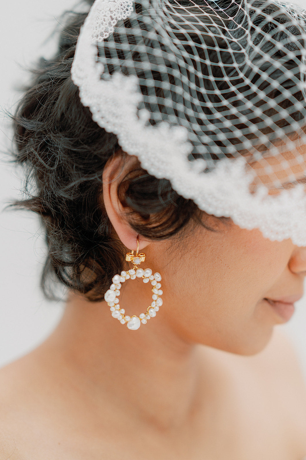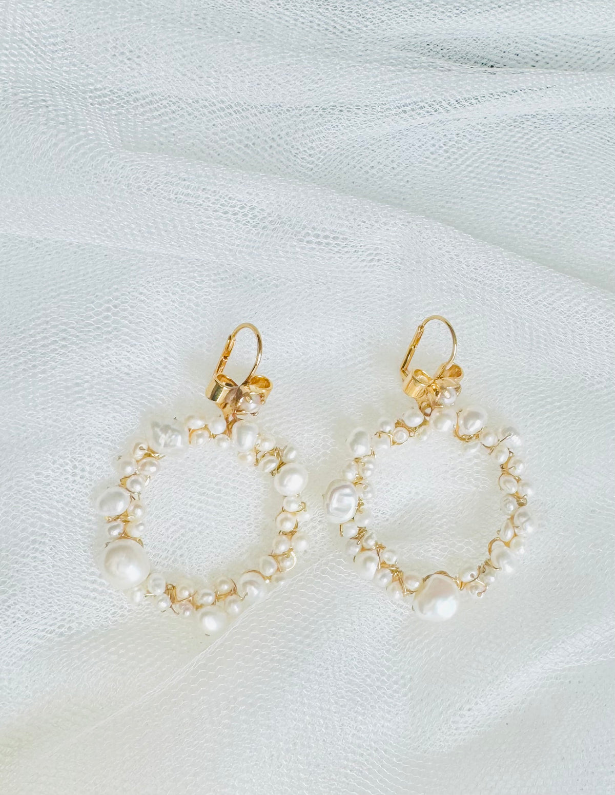 handmade in our studio, these earrings features an imported bow earring component,  plated brass and freshwater pearls