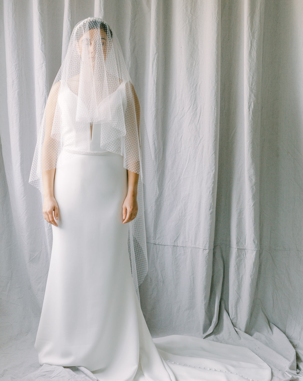 Poeme drop veil is the perfect choice for an unique, simple and sophisticated look, for the modern bride.