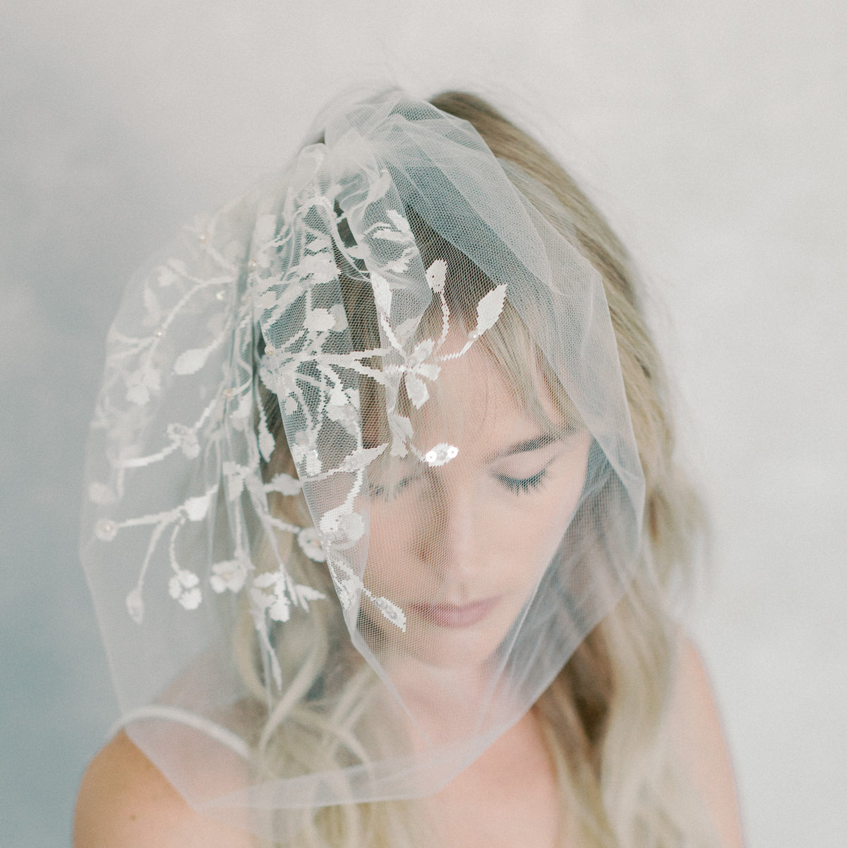 oversize hand painted blusher veil , tulle blusher - style 22023