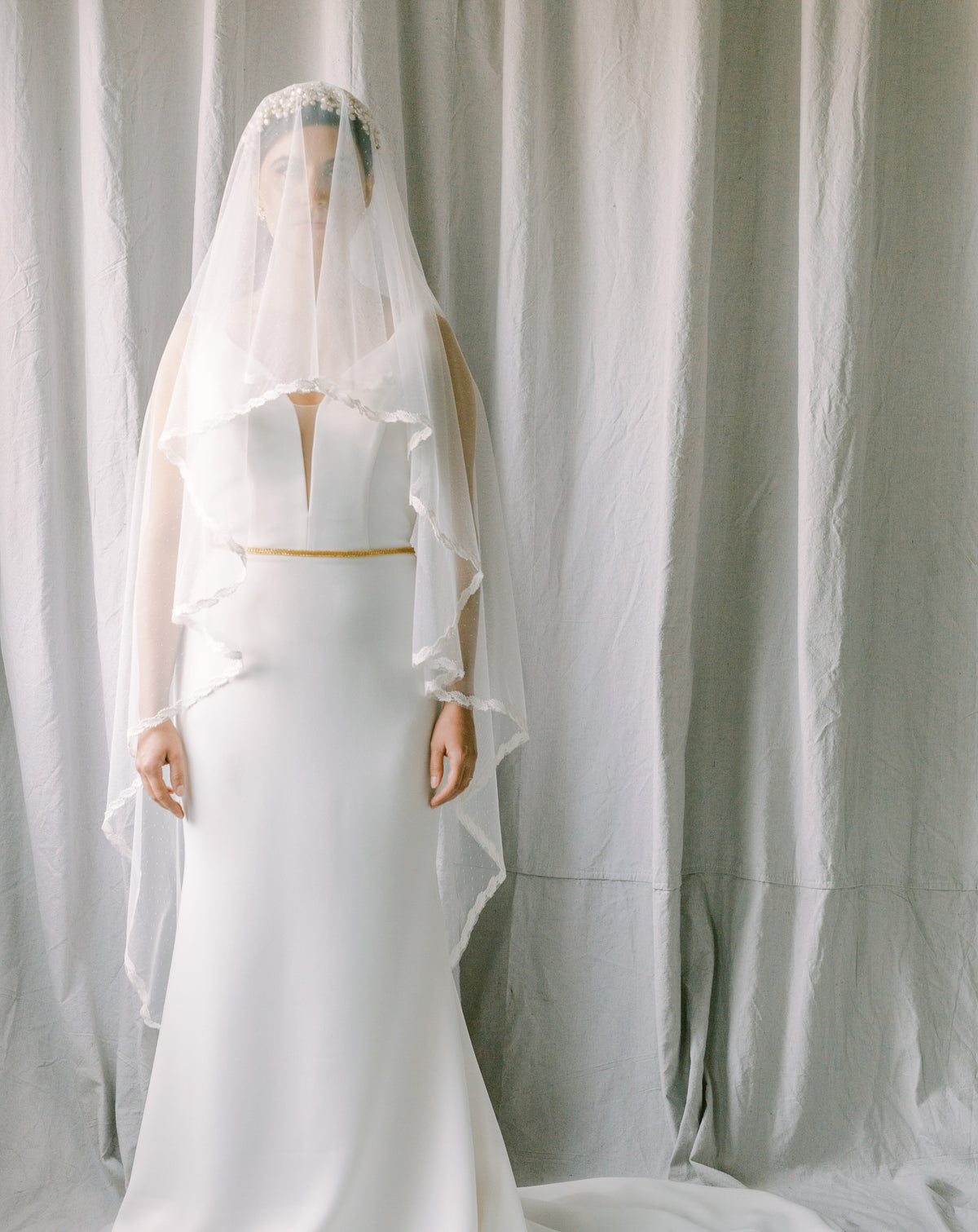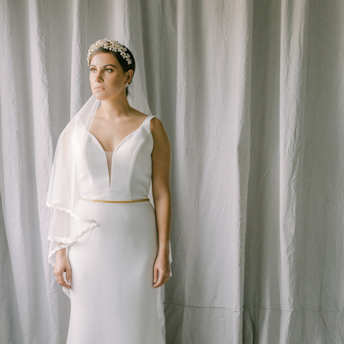 Poesie drop veil is the perfect choice for an ethereal, whimsical look, for the modern bride.