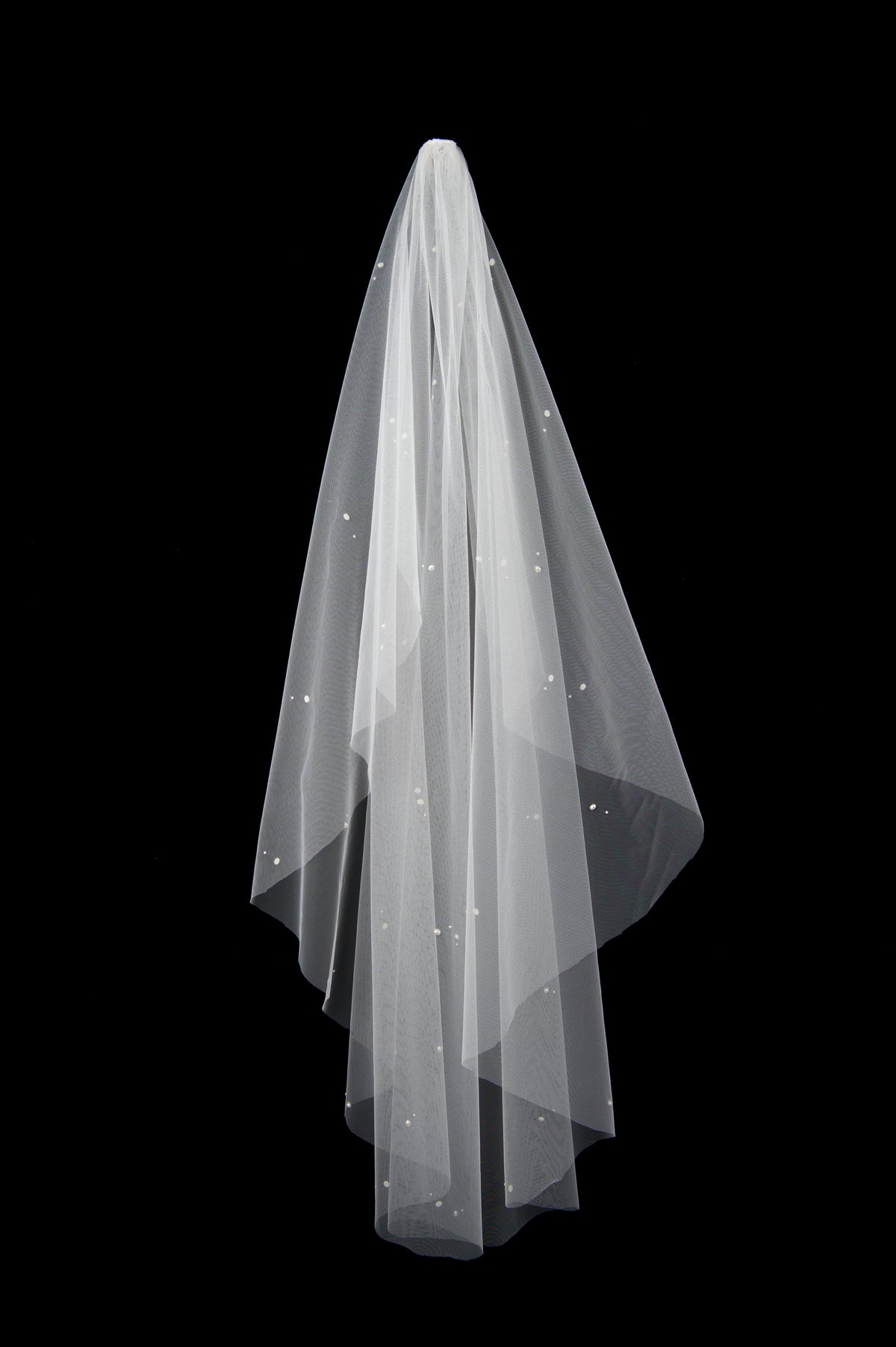 wedding veil with scattered pearls, raw edge bridal veil - ETREINTE Style 21038