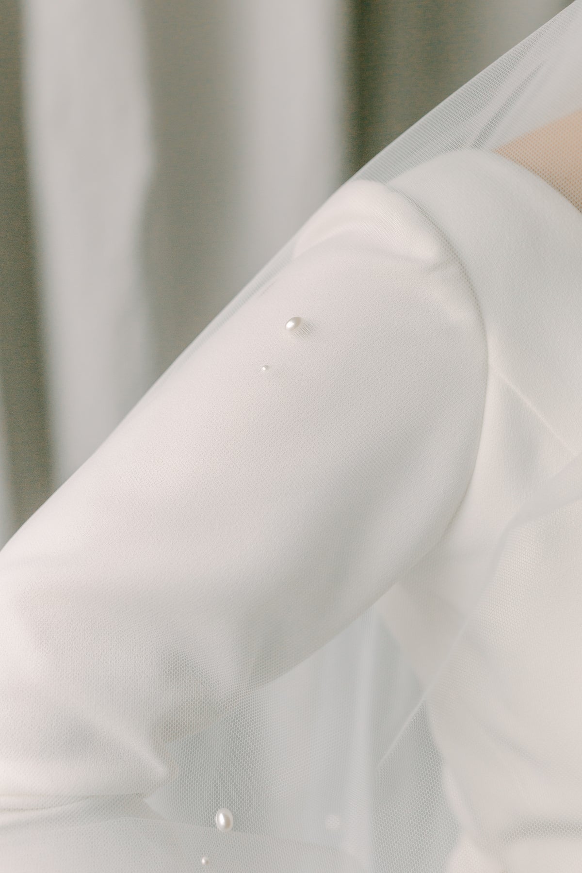 It is made with soft tulle ad fused flat back Czech flat back pearls beads.