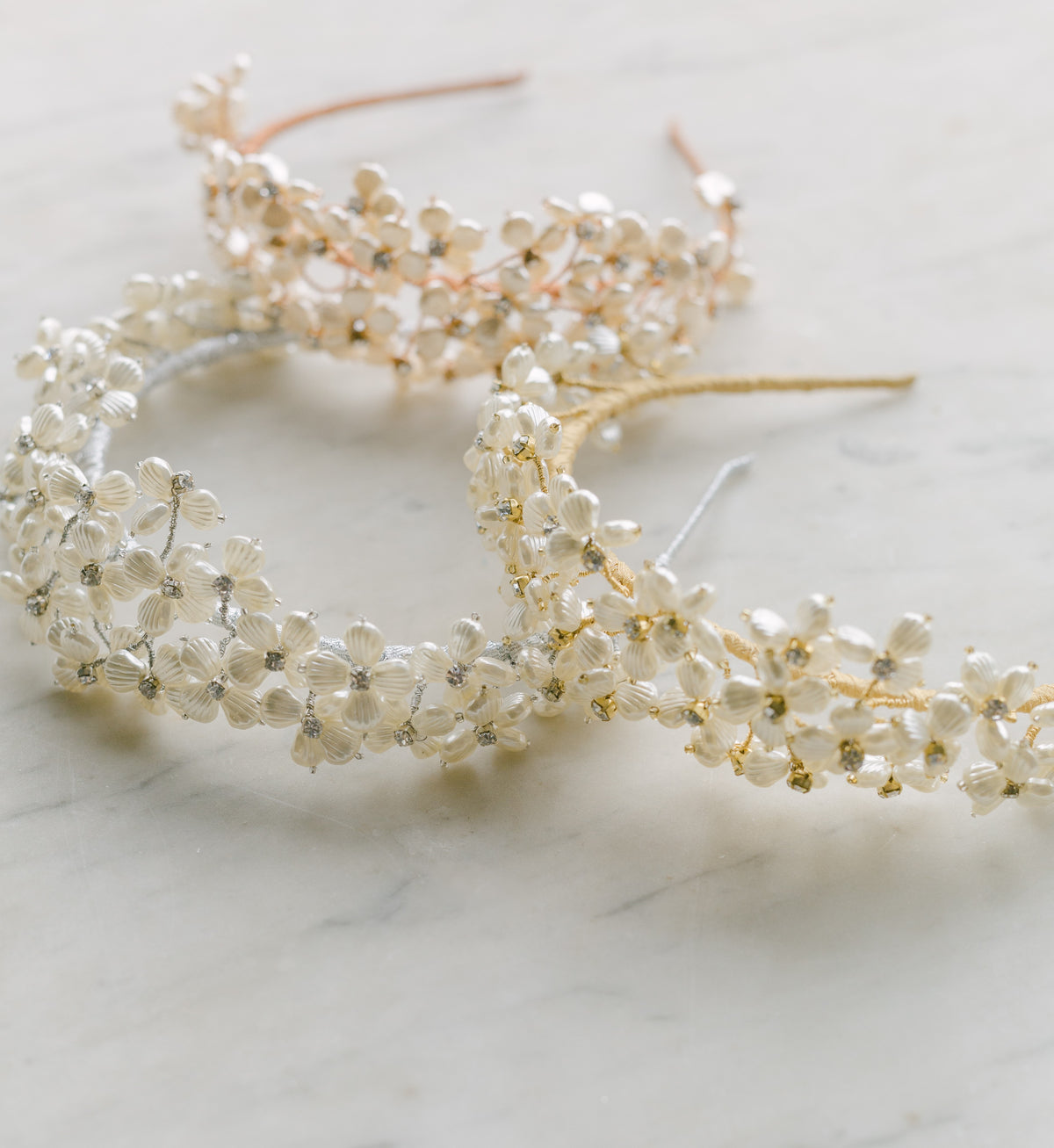 wired pearls, crystals