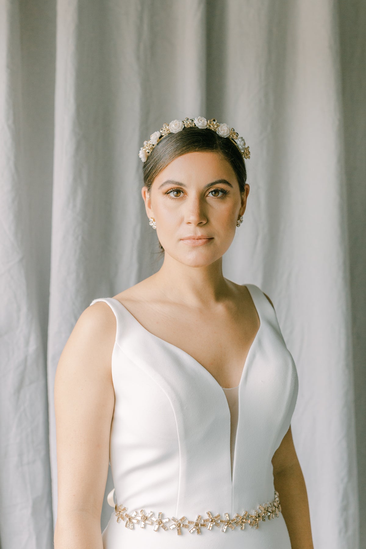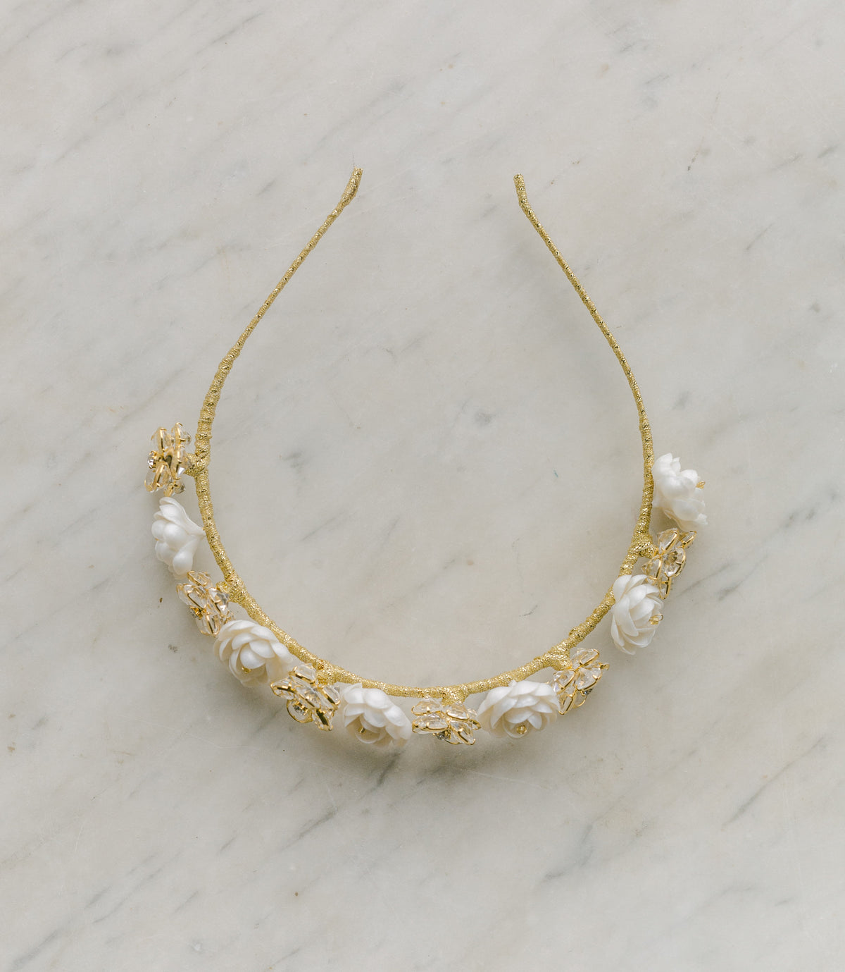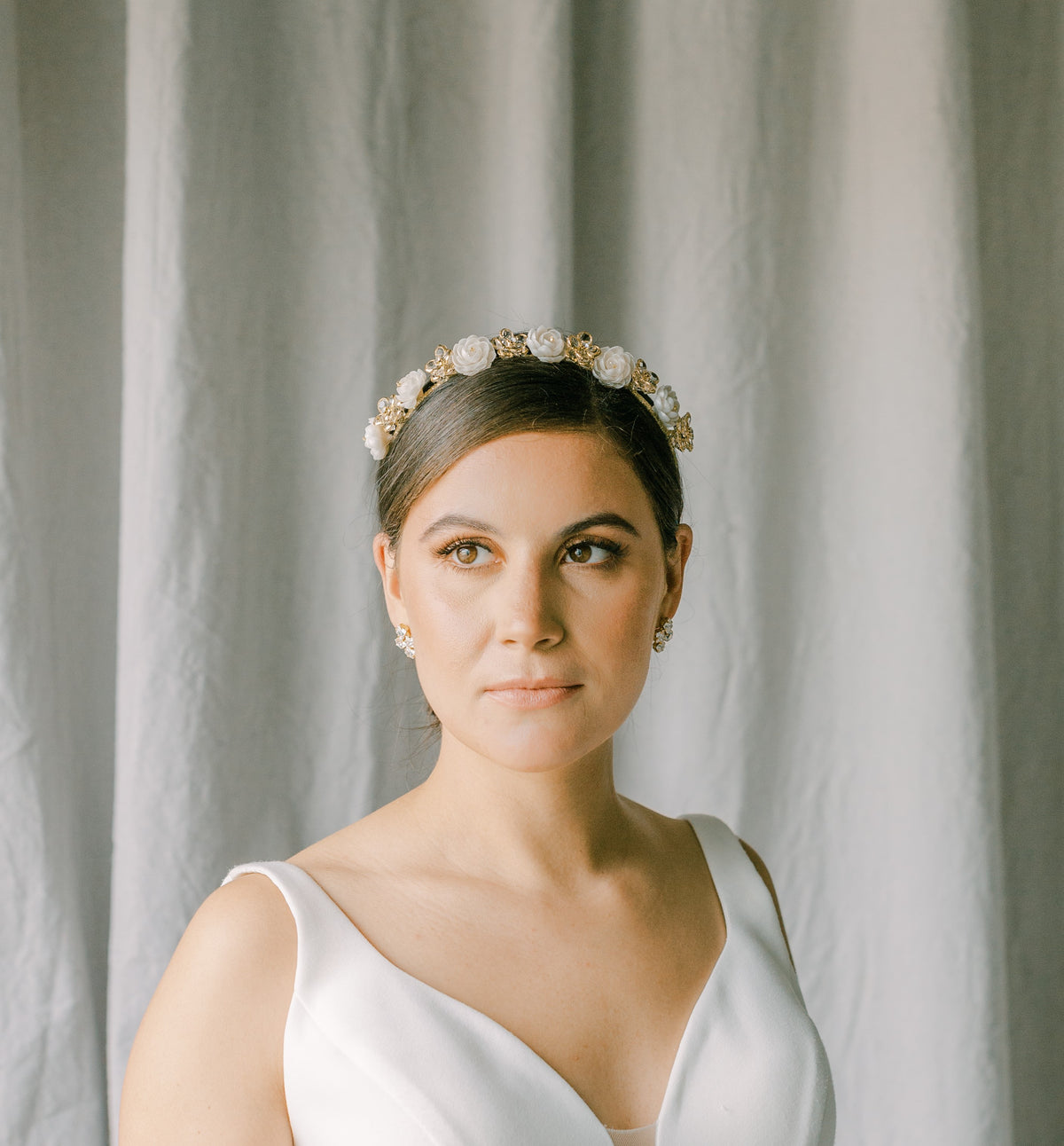bridal crown with crystal and clay flowers, wedding headband, ARDEUR style 21010