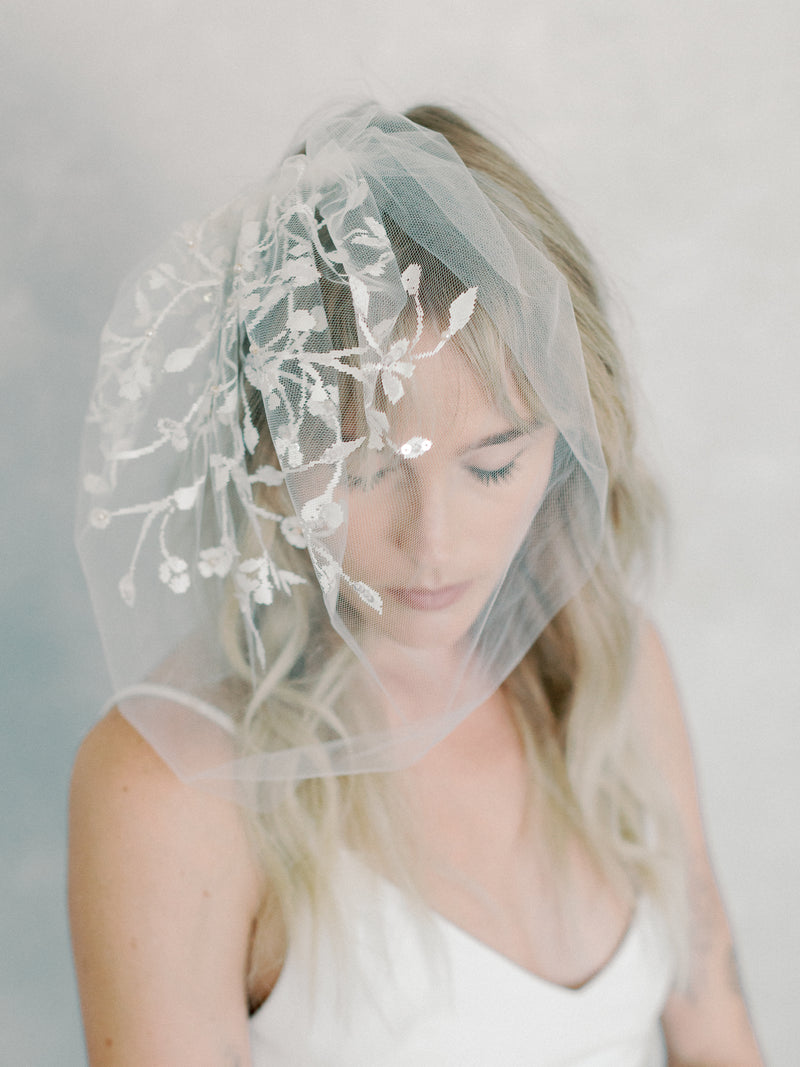 Handpainted Baby's Breath Veil - figertip veil, Chaptel veil (has seen on Anthropologie weddings)