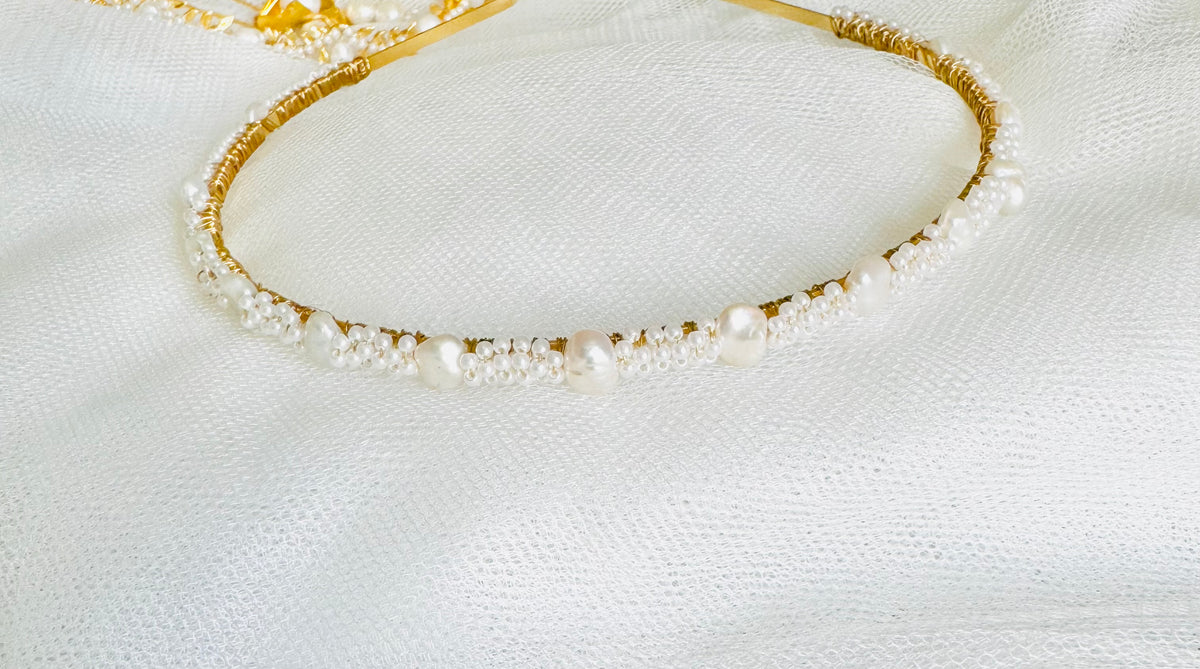 classic Pearls headband with keshi pearls, and Japanese acrylic pearls ., romantic, timeless, beautiful, this simple Pearls headband is an easy bridal or everyday wear.