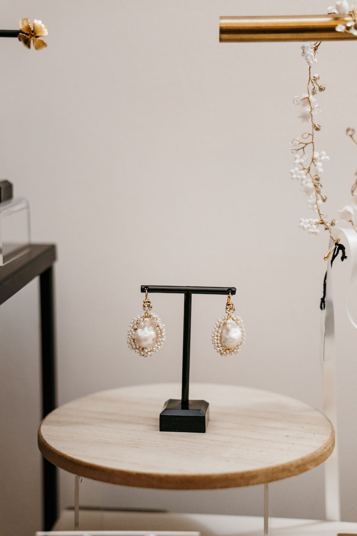 bridal Pearls earrings with keshi pearl - ARYA - 25011