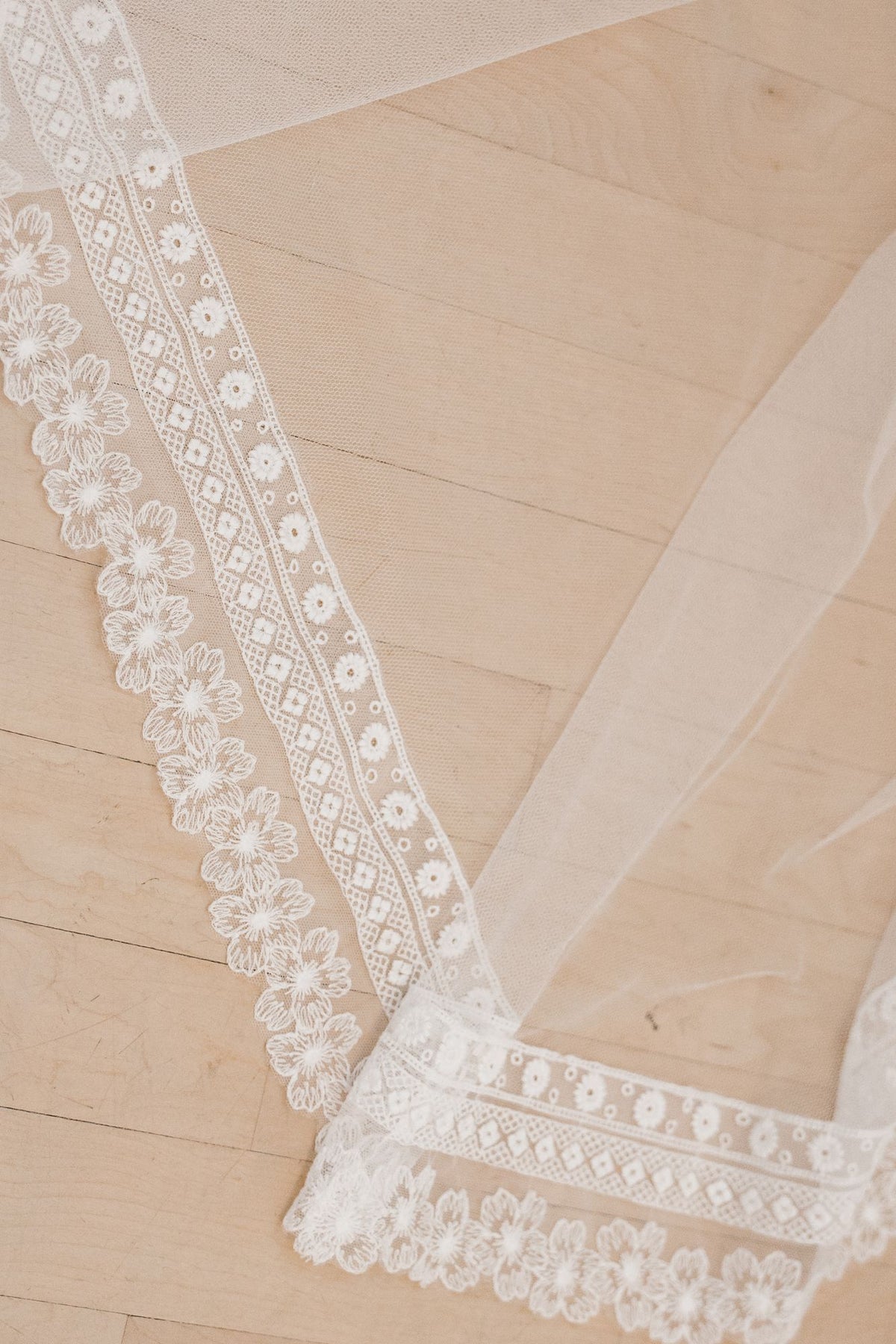This is a unique edges lace veil., beautiful and flowy, made with soft ivory tulle and unique boho lace trim.