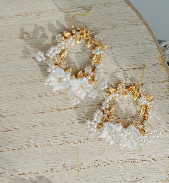 vine earrings with clay flowers - AUGUSTINE- 25021