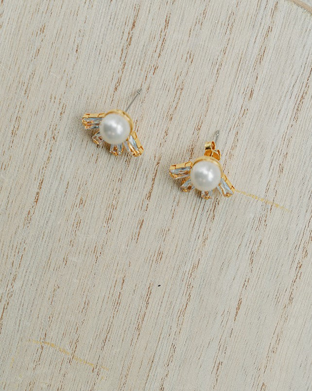 rhinestones baguettes and pearl stud earrings - ALBANNE- 25026