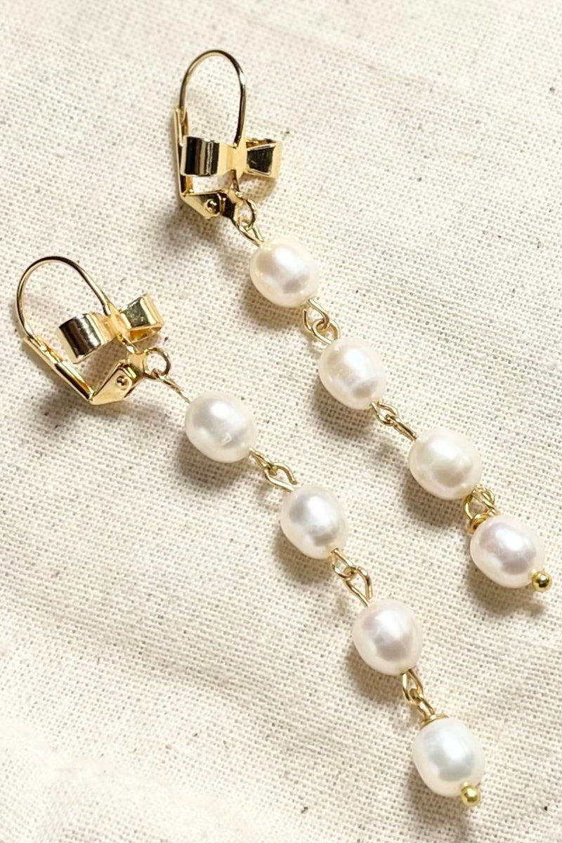 Pearls dangle earrings with brass bow - ALINA- 25033