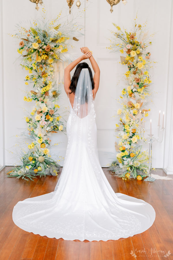 • All of our pieces are made-to-order and this piece requires 4 - 8 weeks to be produced. this veil is fully customizable. please contact us for any custom request, subject to prices and production time changes.