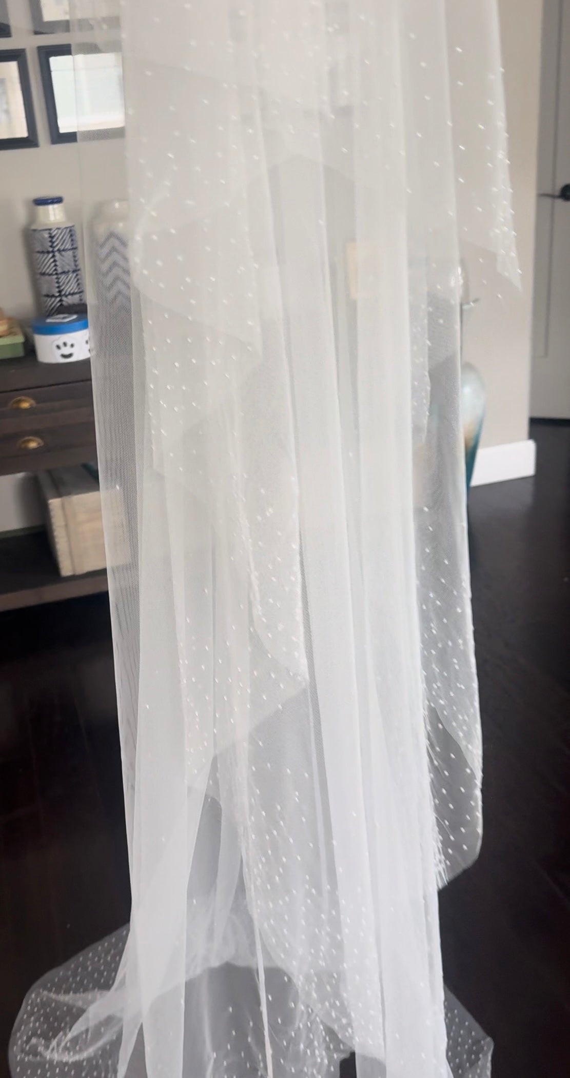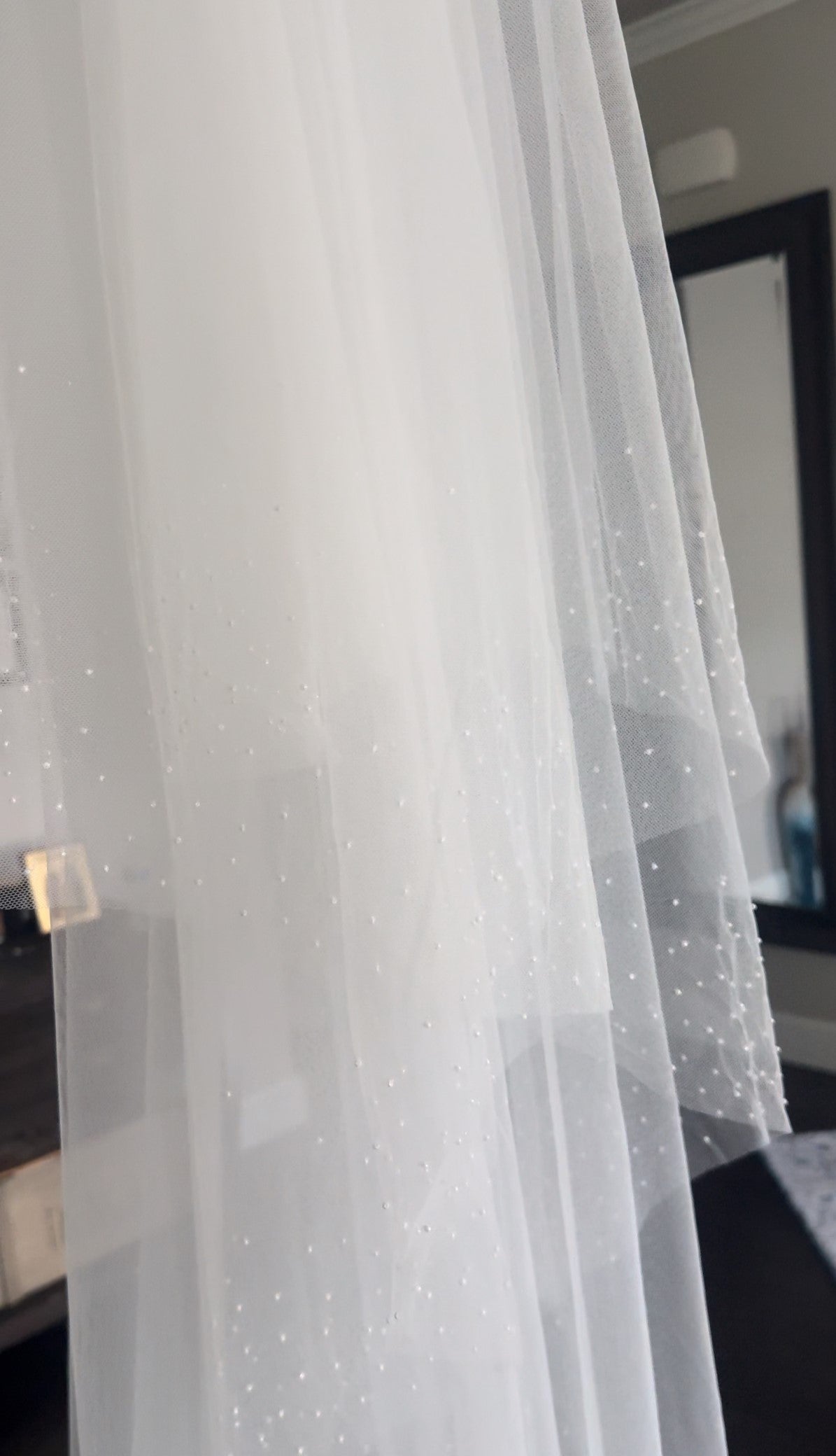 This is a breathtaking thiny beads veil., beautiful and flowy, made with soft ivory or white tulle and glass seeds beads