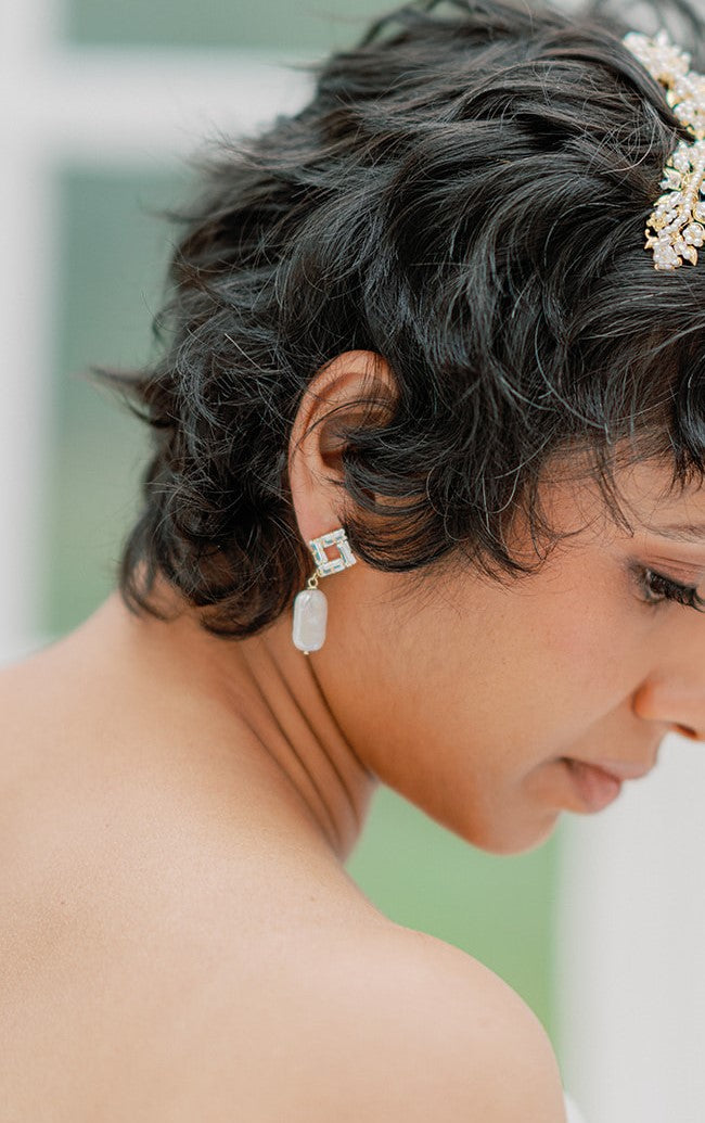rhinestone stud earrings with rectangle keshi pearl- ALBERTHE- 25047