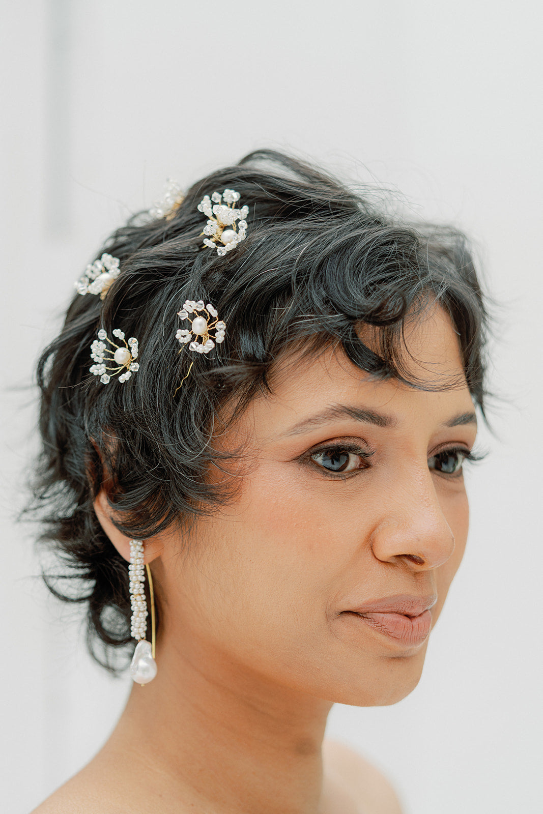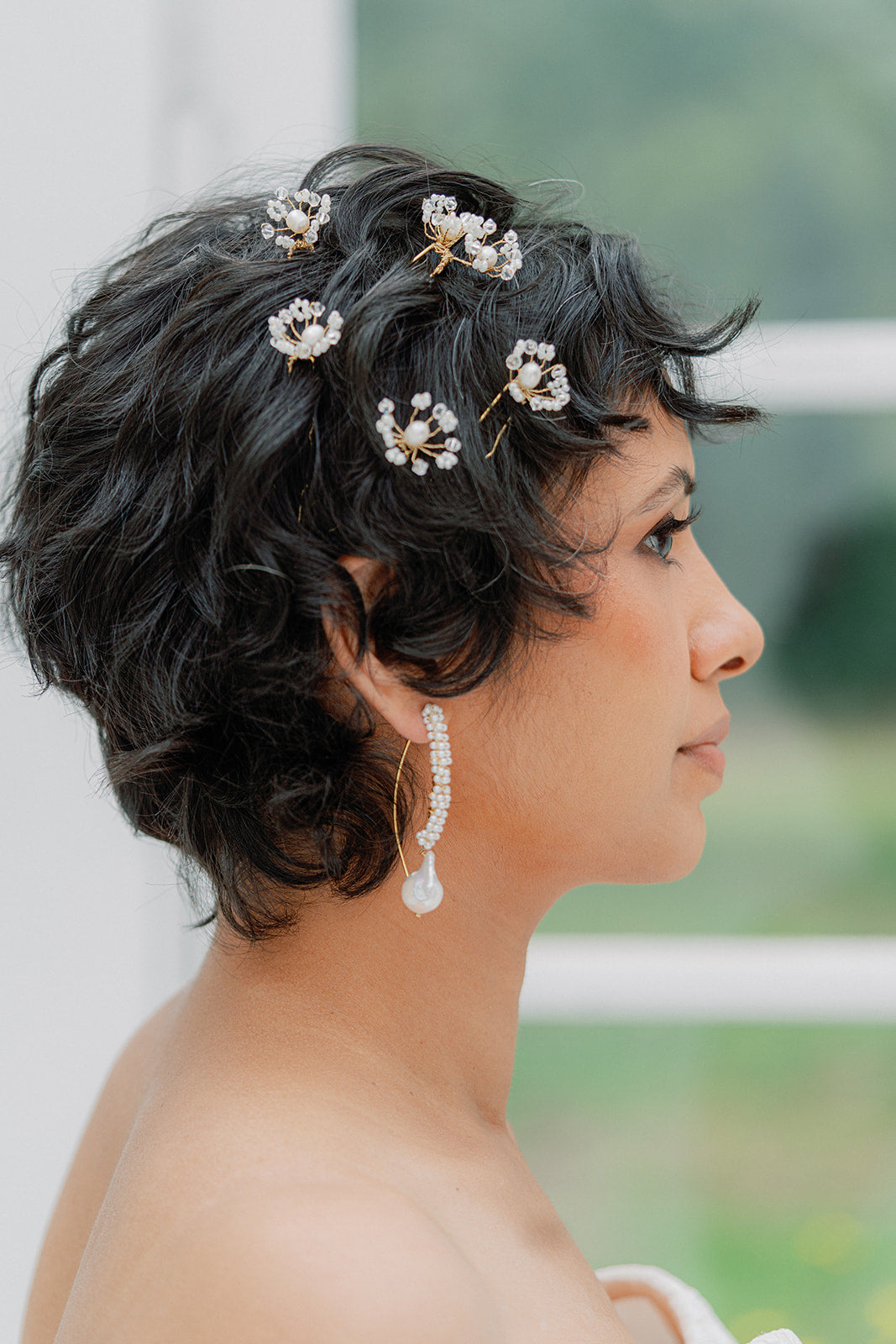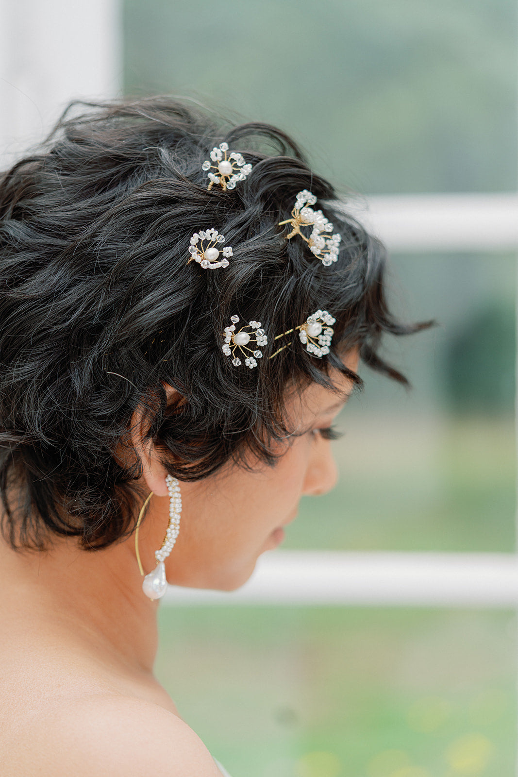 crystal and pearls hair pin set of 5, handwired, tiny pearls and crystal cemtered with freshwater pearls.