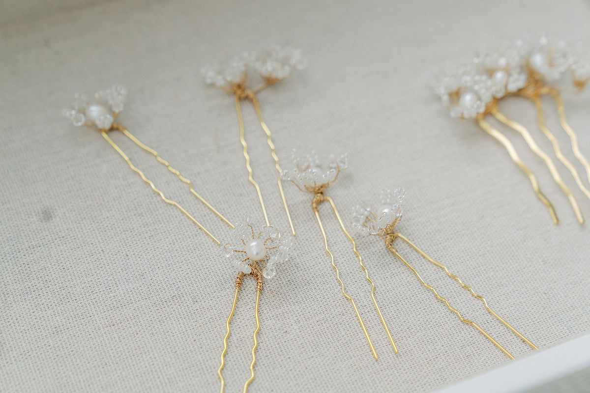 - the listing is only for the set of 5 hair pins, any other items in any of the pictures is not included