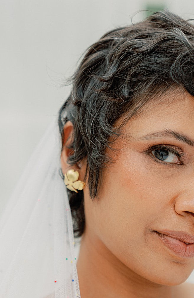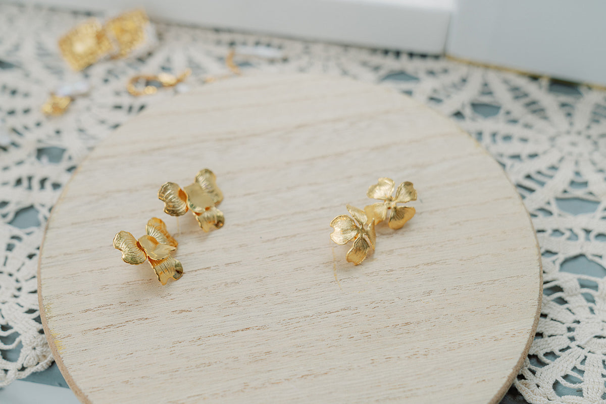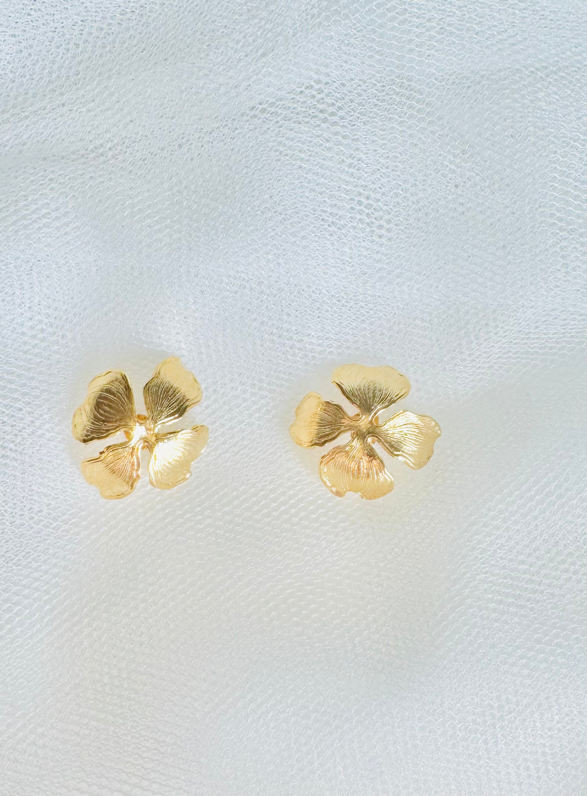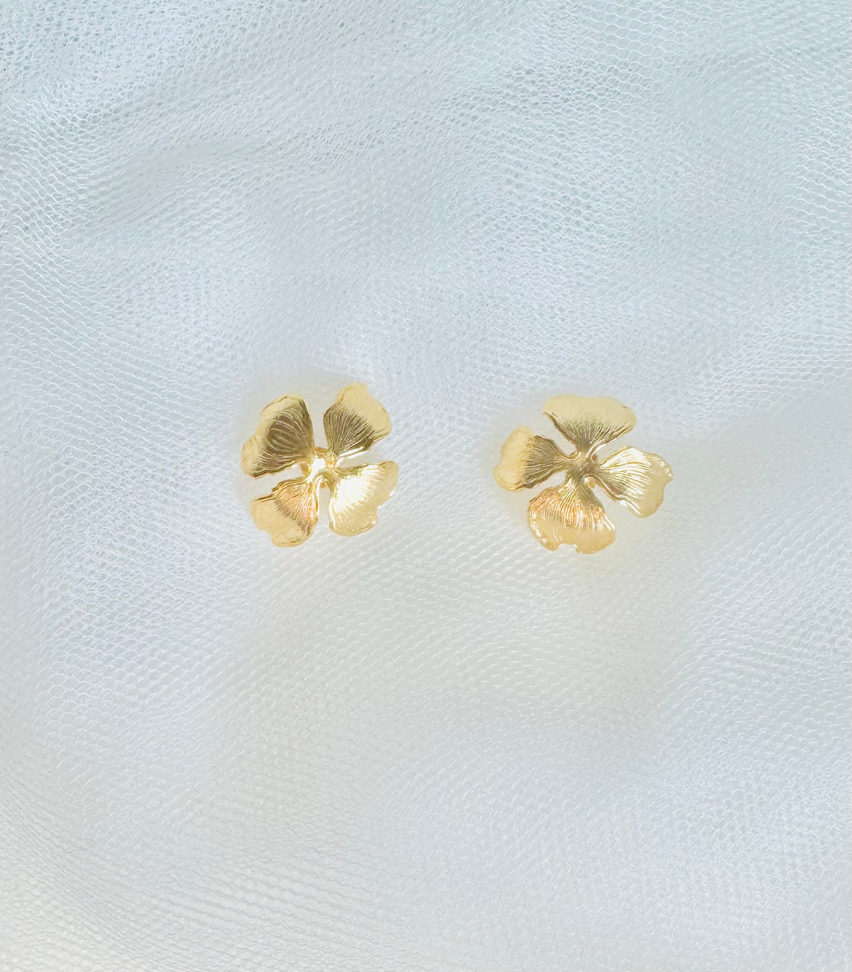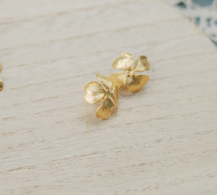 handmade in our studio, these earrings features bended brass flowers, plated in silver or gold.