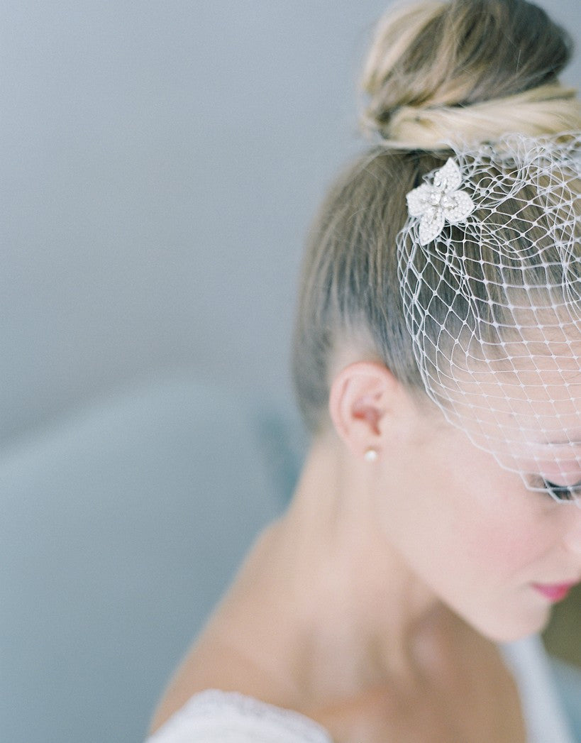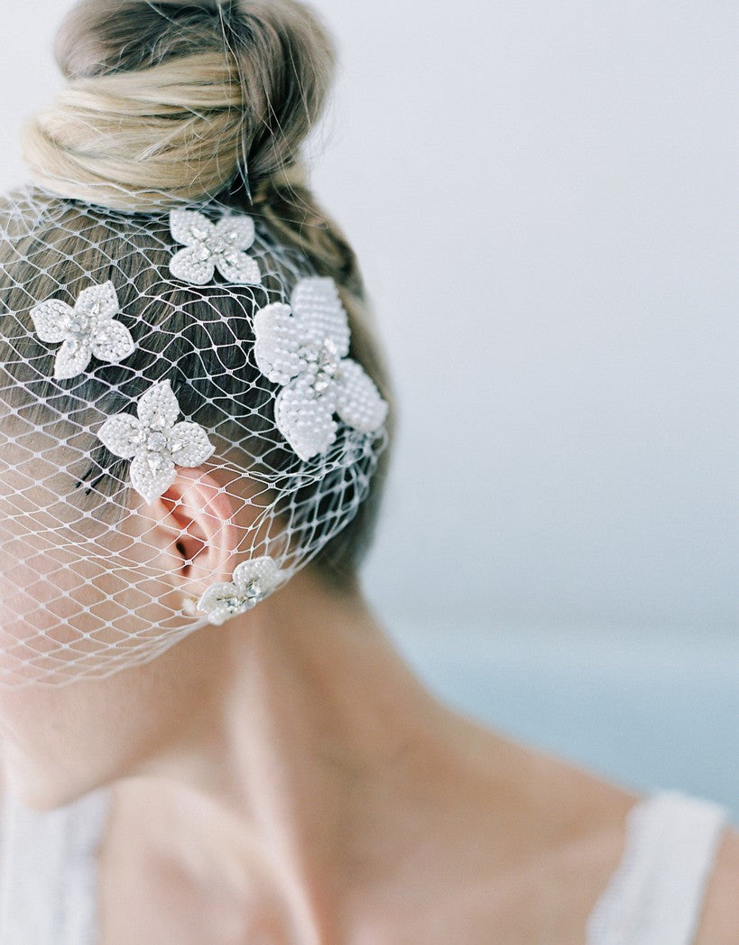 beaded appliques birdcage veil - GRENOBLE - VE16009