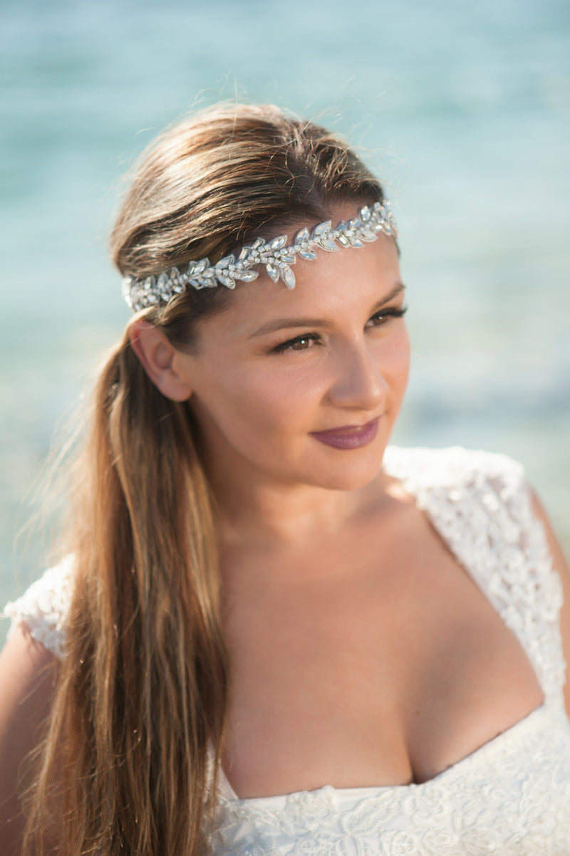 White Opal beaded vine headpiece and sash HPB170639 Coralie
