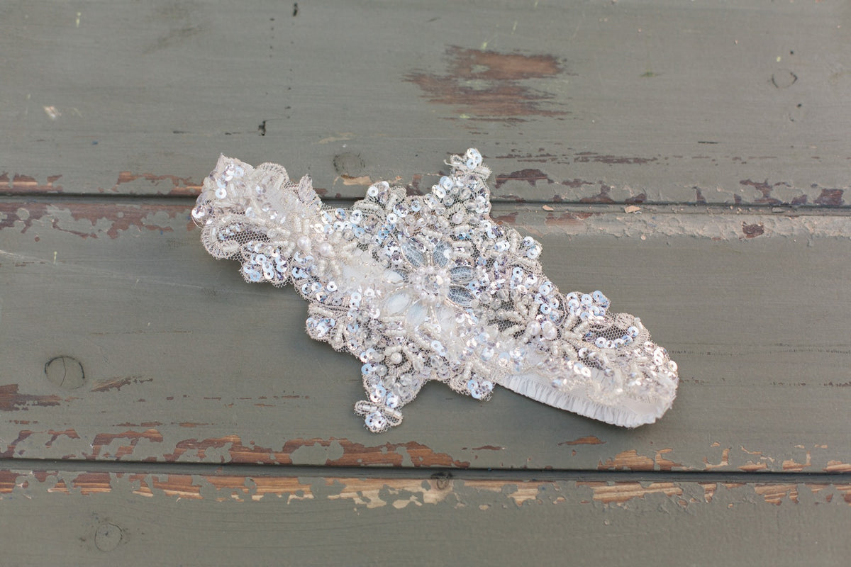 bridal garter set with crystal and silver beads
