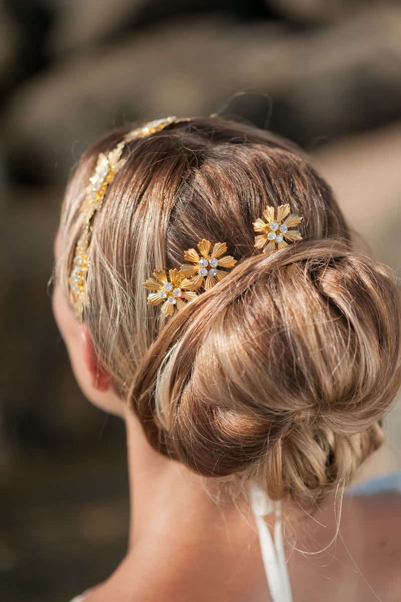 set of 2 brass flowers comb HP170615 Marina