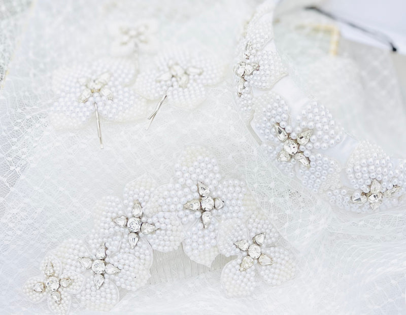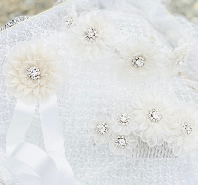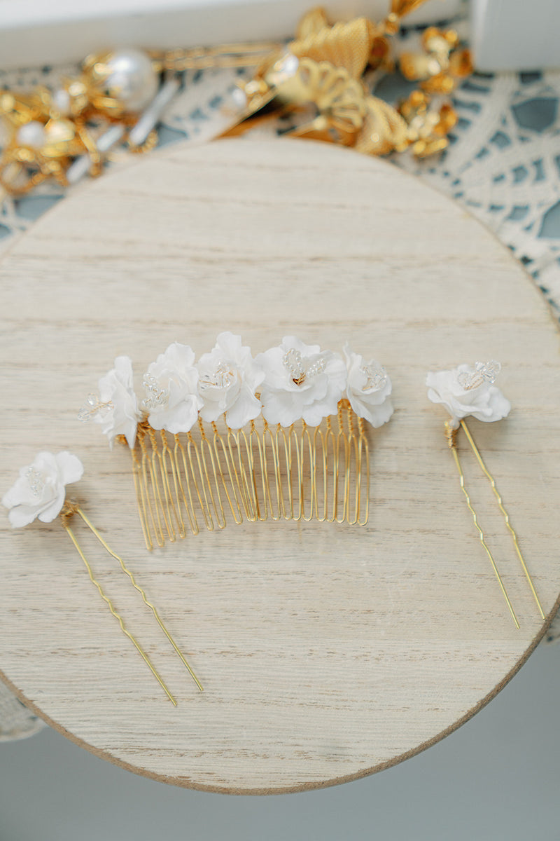 wedding headpiece, floral hair pins and comb set - AYA - 25031