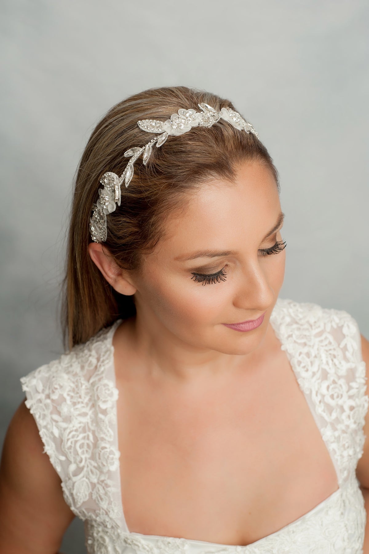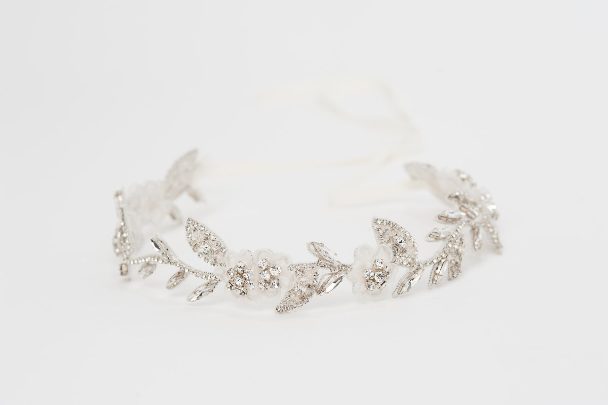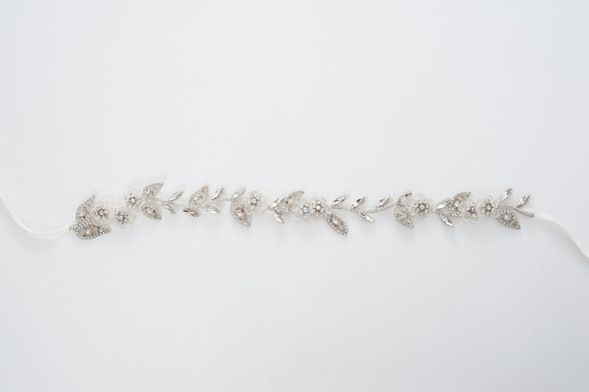 Silk flowers beaded vine headpiece and sash HPB170605 Celine