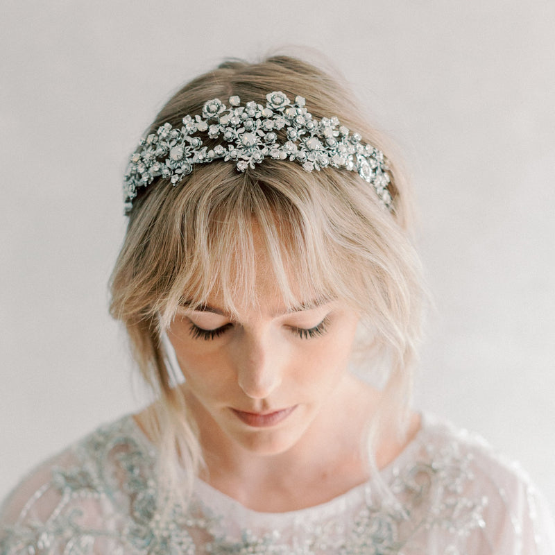 pearls and clay flowers bridal crown, baby beath wedding headband style 22001