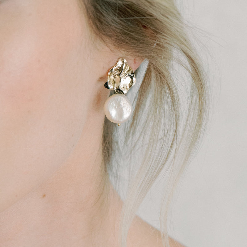 pearls earrings, keshi pearls earring with mapple leaf - style 22010