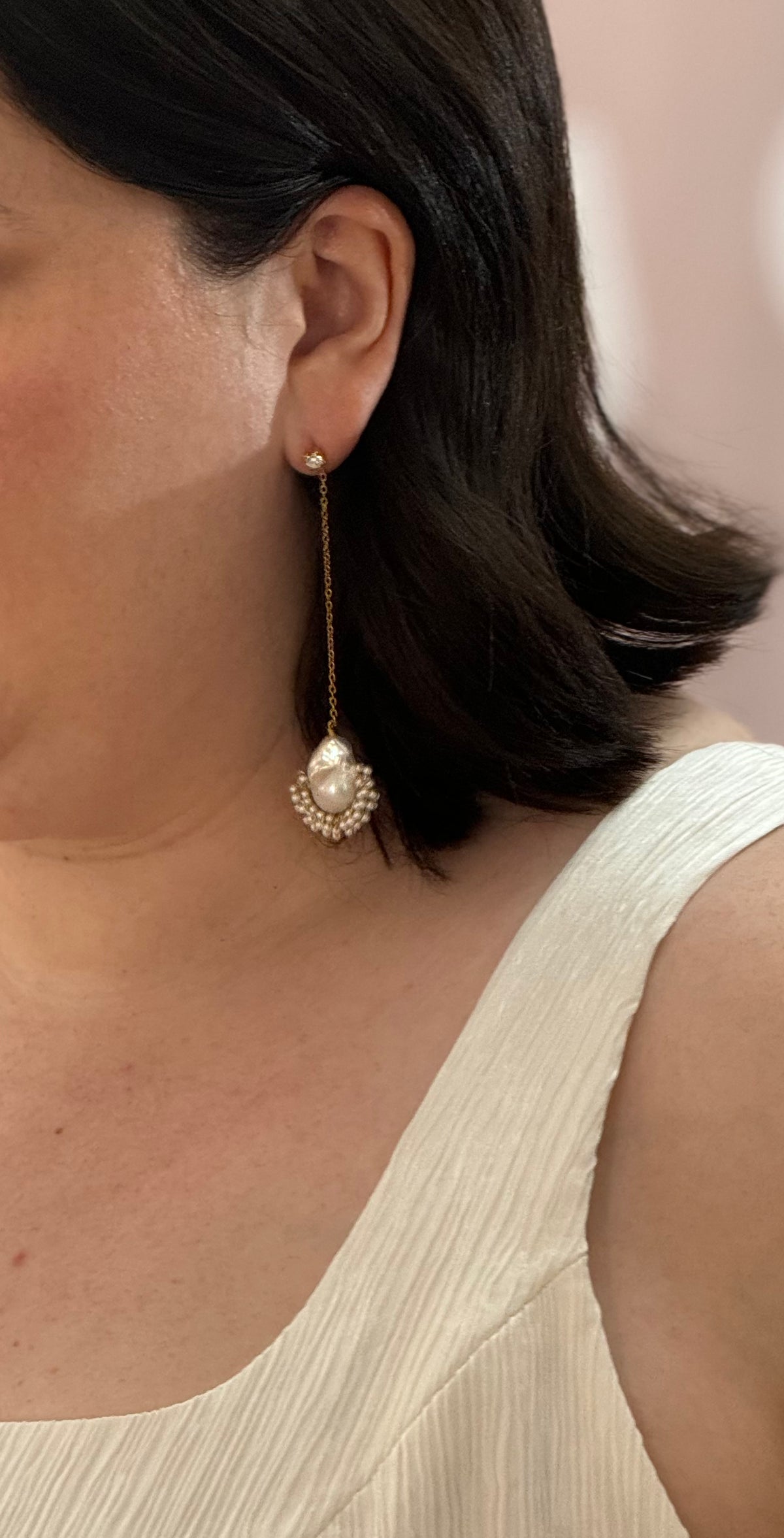 Dangling Pearls earrings with big keshi pearl - AIDA- 25010