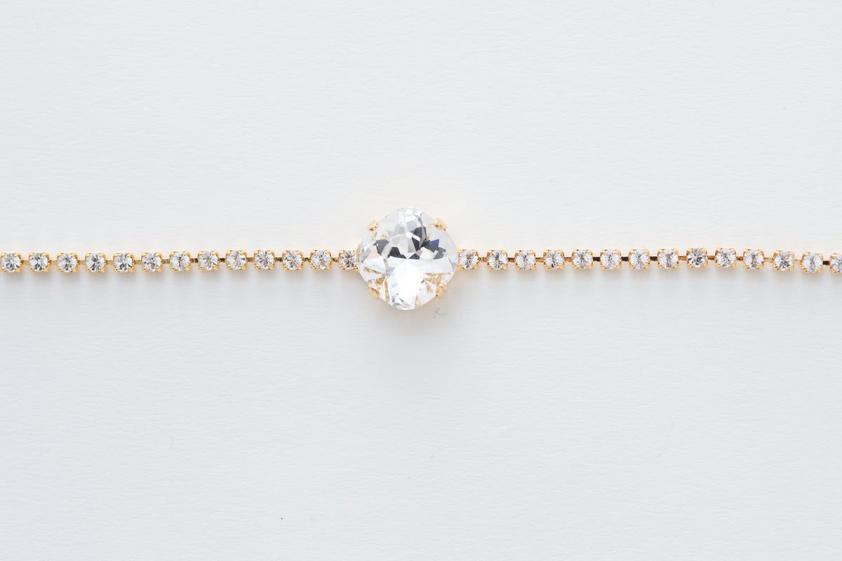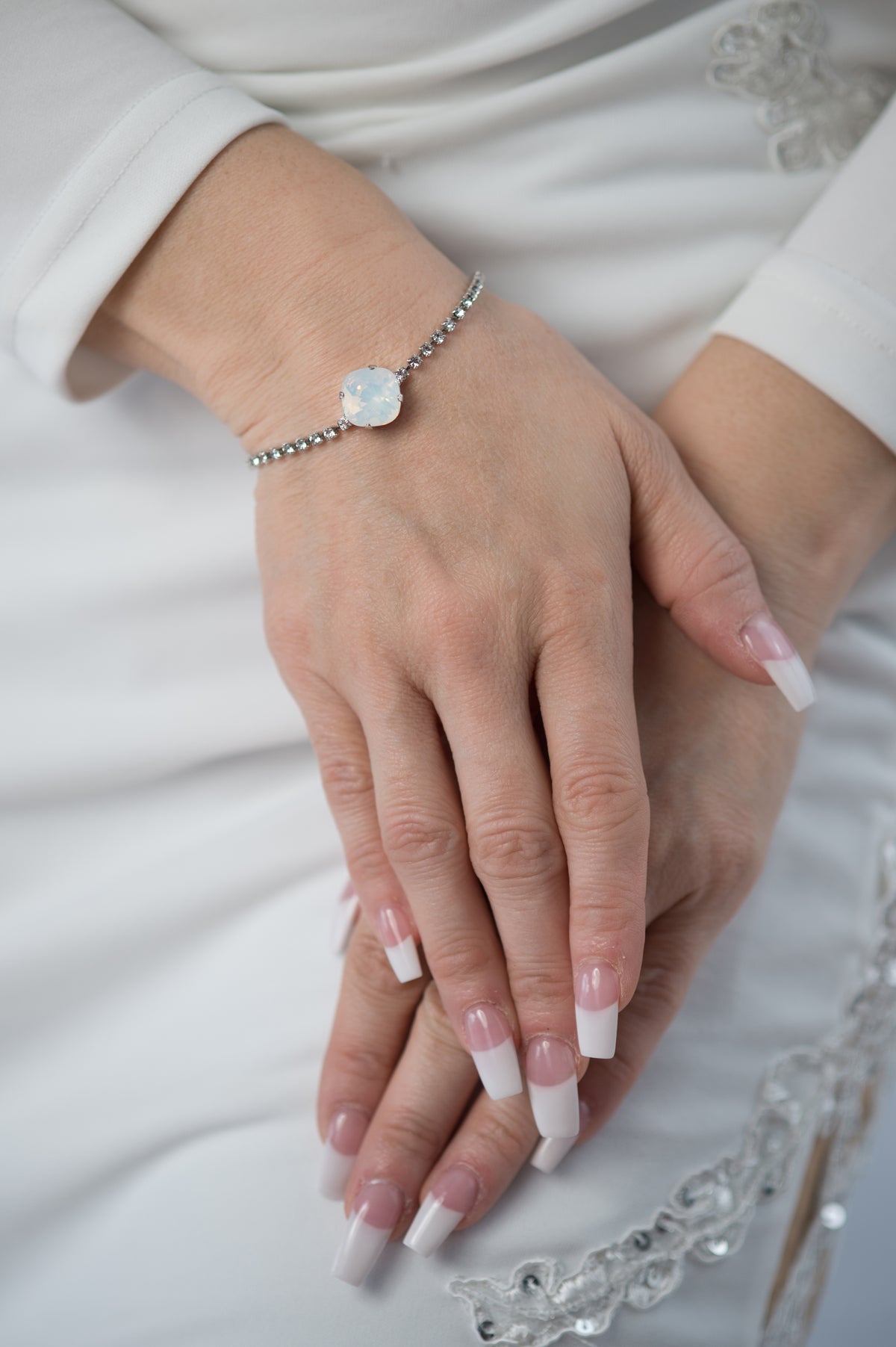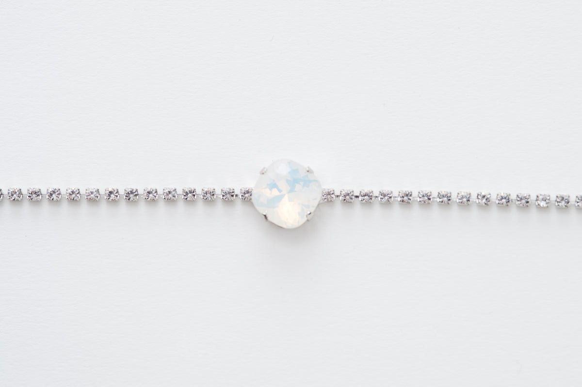 bracelet is made with Swarovski clear crystal chain and a single Swarovski crystal stone clear or white opal ( custom color can be requested)