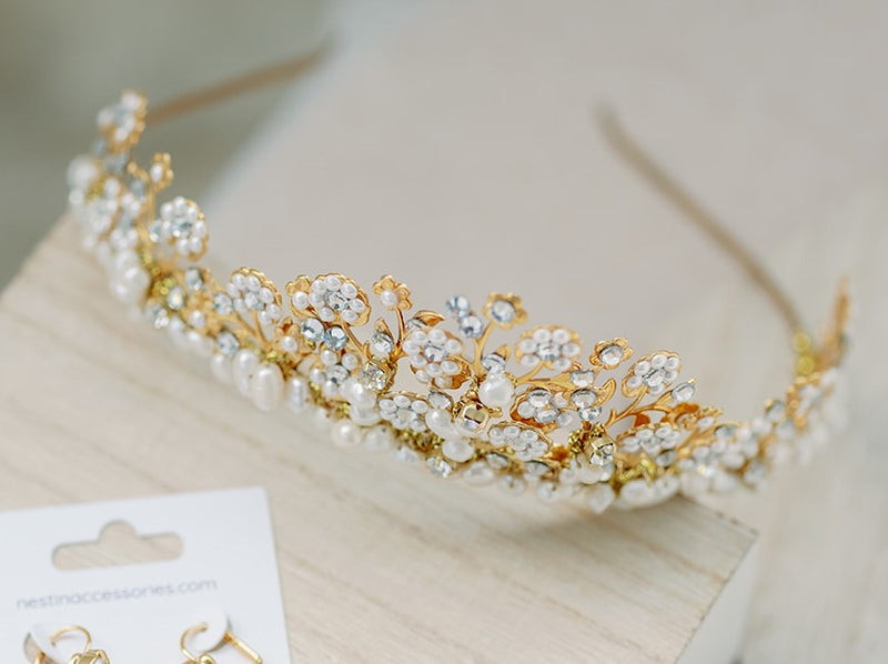 Gold Pearls and brass headpiece - CORALINE style 23013