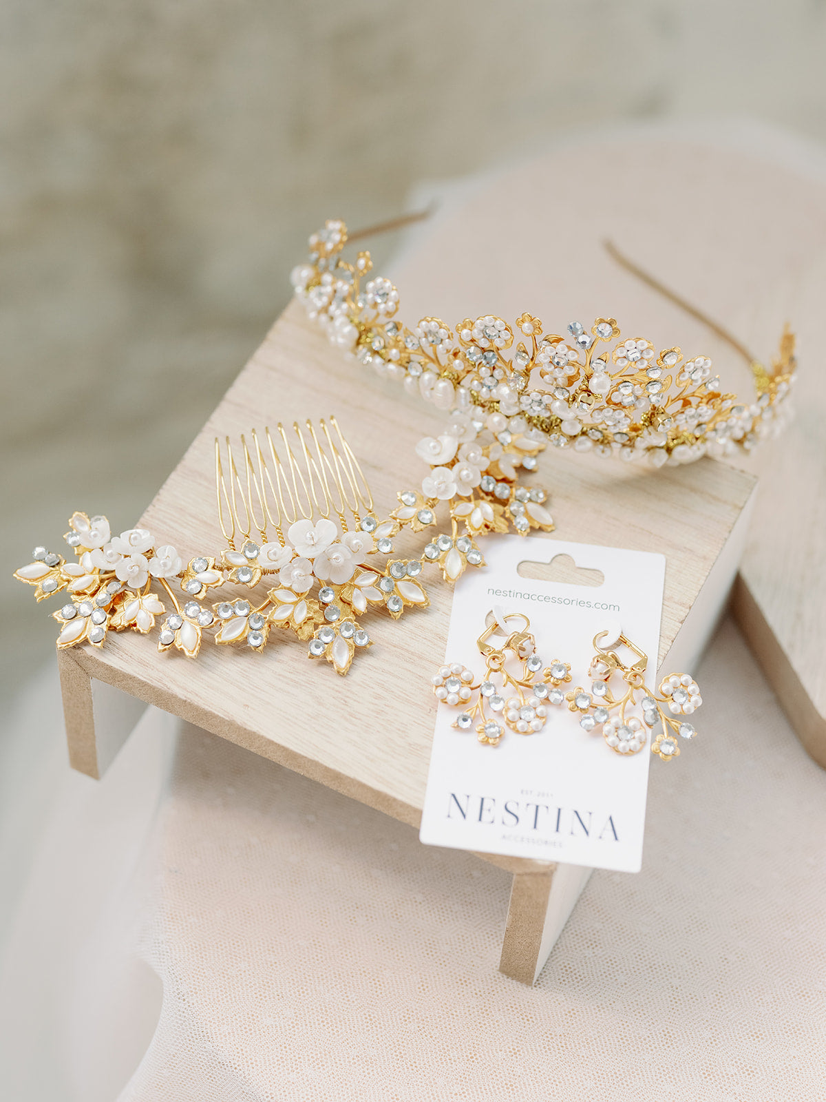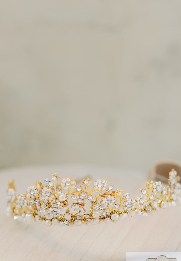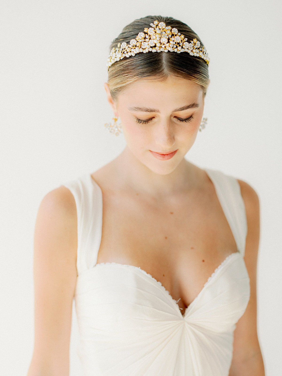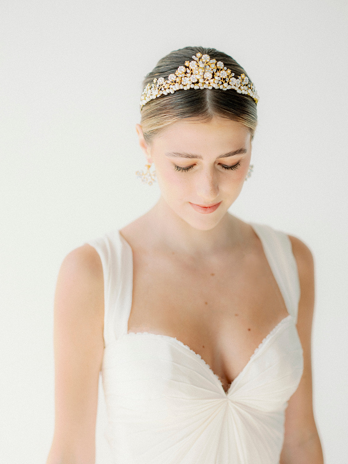 hand wired and hand adorned with countless fpreciosa lat back crystal and pearls